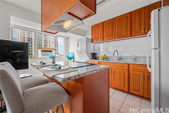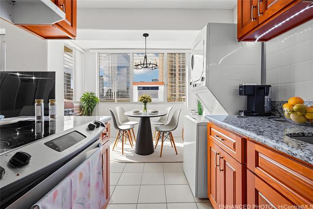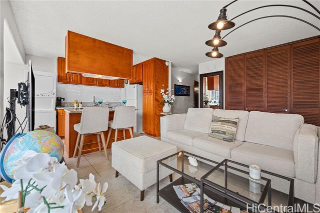 - Welcome to King Manor, a well-maintained boutique condominium in the heart of Honolulu. This centrally located residence offers the perfect blend of comfort and convenience, just minutes from Waikiki, Ala Moana, downtown Honolulu, and freeway access. Or, catch the bus, it's just a short walk to the nearby Alapai bus station. Inside, enjoy an efficient layout filled with natural light, cooling island breezes, and thoughtful living space ideal for owner-occupants or investors alike. The entire unit was renovated in 2016 and is still in very good condition. New ACs added in 2023 and blinds in 2022. This END UNIT is in the 07 stack which is special because it has an extra closet area in the living room, as well as an extra indoor dining room area. Units on this side of the building are not affected by the noise of nearby construction. City and peek-a-boo ocean views from the lanai. Some furniture can be negotiated to be included. King Manor is a building featuring gated entry, an assigned parking stall that is larger than some others, and a refreshing pool and sauna. Low maintenance living meets unbeatable location, with nearby shopping, dining, public transportation, and hospital.