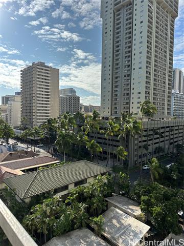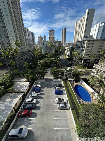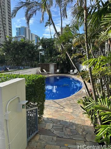 - Rarely available, fee simple, spacious, furnished one-bedroom in the heart of Waikiki, just steps away from great restaurants, night life, shopping and the beach. Overlooking Centennial Park, this desirable building is well kept and secure, has a full time manager, and features a lovely pool and BBQ area. The unit includes a secured parking spot and a storage unit. The building has a 30-day minimum rental policy.