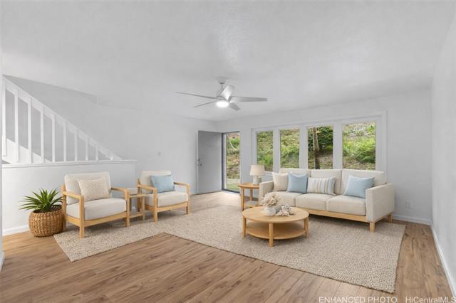 - This townhome in Mariners Village III, offers a peaceful and relaxed lifestyle in beautiful Hawaii Kai. Wake up to gentle trade winds, gorgeous mountain views, and stunning sunrises in this inviting split-level 3-bedroom, 2.5-bath home. The recently upgraded kitchen features quartz countertops and stainless steel appliances, perfect for family meals and gatherings. Enter from your ground-level 2-car covered carport and head upstairs to the spacious main floor with an open-concept kitchen, bright living area, and a convenient half bath. Enjoy morning coffee or family dinners on the covered lanai overlooking lush surroundings. Upstairs, the primary suite includes its own lanai and full bath, while the two guest bedrooms share another lanai with mountain views—ideal for creating cozy family spaces. This pet-friendly community (buyer to verify) is close to Costco, Safeway, Koko Marina shops, local eateries, and 24 Hour Fitness. A wonderful community to call home.