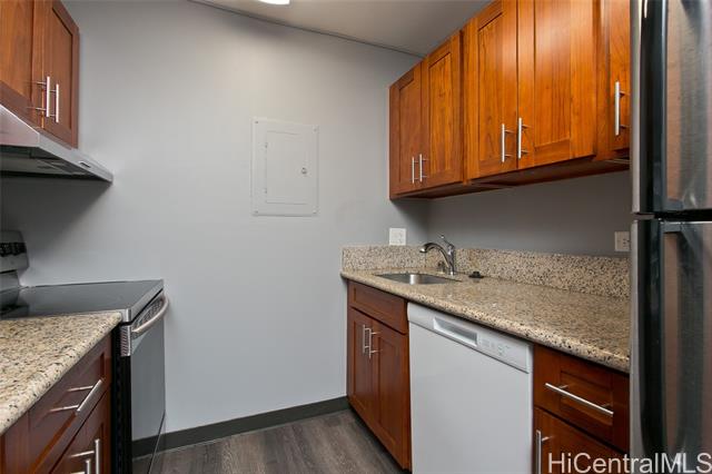 - Calling all investors looking for a turnkey investment opportunity with immediate rental income. This high-floor, tenant-occupied unit is ideal for investors seeking a stabilized asset in a centrally located Honolulu building. The efficient layout offers excellent natural light and expansive city views. This one bedroom one bathroom unit comes with one assigned covered parking stall and features an enclosed lanai, creating additional usable interior living space larger than many comparable units in the building. Other features include vinyl plank flooring, granite counters, roller screens in living room and bedroom, stacked washer/dryer and built-in shelving. The building is secured and offers amenities including a swimming pool, barbecue area and even a convenience store on property enhancing tenant retention and marketability. Centrally located near Downtown Honolulu, Queen’s Medical Center, vibrant Kaka'ako, freeway access, dining, and public transportation. Consistent tenant demand make this property well suited for buy-and-hold investors or those looking to expand their portfolio.