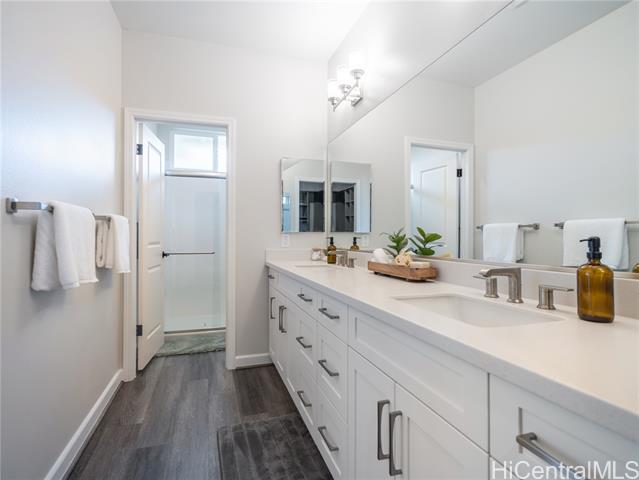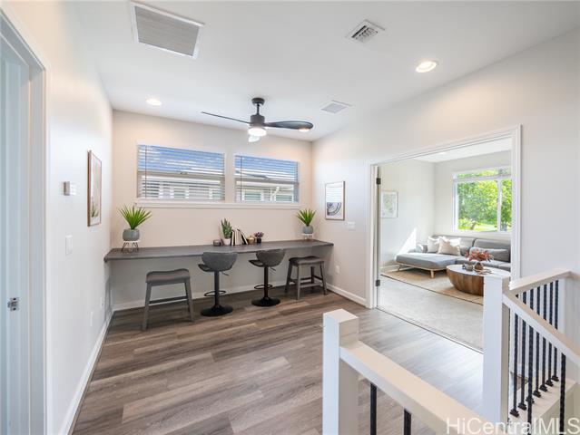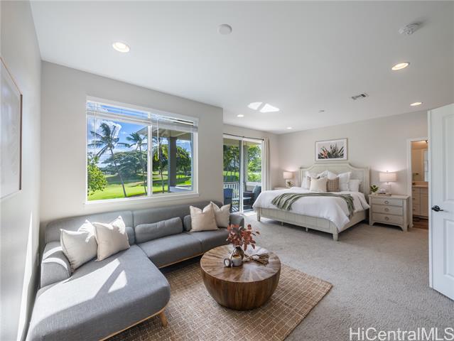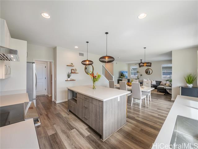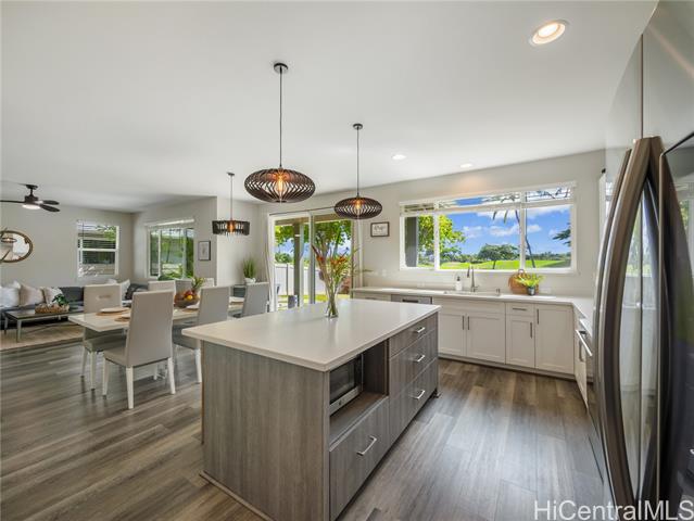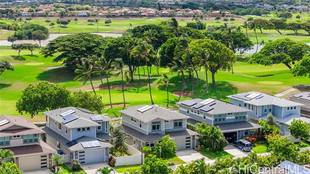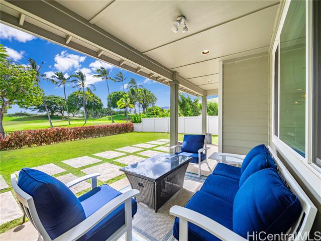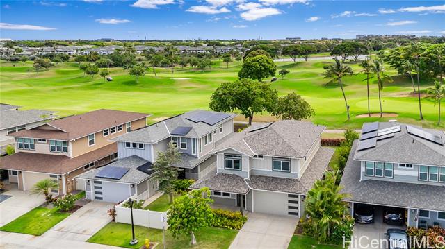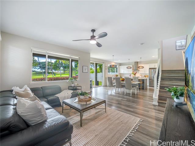 - Perfectly situated on Hole 17 of the beautiful Kapolei Golf Course, this 4-bedroom, 3-bath home offers 2,119 sq ft of thoughtfully designed living space in one of Oahu’s most sought-after communities. Step inside to a bright, open layout with a chef’s kitchen featuring a large island, range hood, dishwasher, refrigerator, and wine cooler—ideal for everyday living and entertaining. The primary suite includes a walk-in closet and private ensuite, while the additional bedrooms offer flexible space for guests or a home office. With central AC, in-home laundry, and a fully fenced backyard overlooking the fairway, this home blends comfort, privacy, and scenic beauty. Located in the heart of Kapolei, you're just minutes from shopping, dining, top-rated schools, and world-class beaches—all while enjoying the tranquility of golf course living.