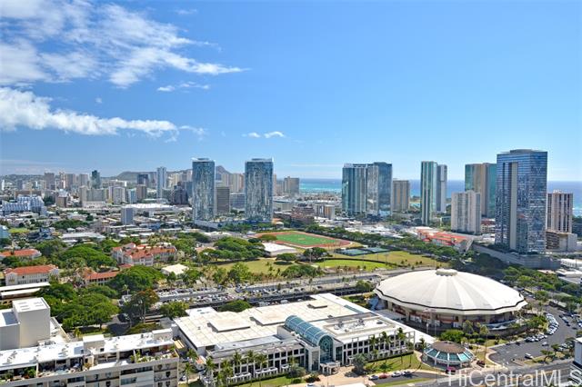 - Enjoy the lifestyle of Honolulu city living with everything just minutes away- convenient location in Kakaako. Come experience modern island living in this fully furnished 1-bedroom, 1-bath condo with ocean, city and mountains view on your covered lanai. The perfect combination of convenience and luxury, very close to Straub hospital, Neal Blaisdell Center, farmers market, minutes from downtown, Ala Moana Shopping Center, Whole Foods, boutique shopping, dining, and the beach. This well managed, secure, and contemporary condo features central AC, in-unit fire sprinklers, is a pet-friendly building and has 100% hurricane insurance coverage. Amenities include a large pool with spa, bbq area, recreation room, car wash and EV charging area, 14 guest parking spaces, and 24 hour security, gated parking, keyed elevators, and secured entry. Maintenance fees includes cable, high speed internet, hot water, sewer and water. This unit is currently rented on a month to month basis.