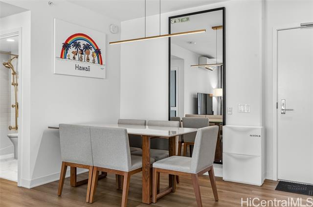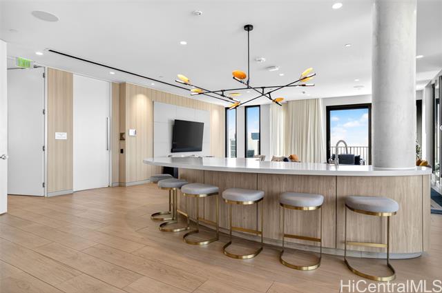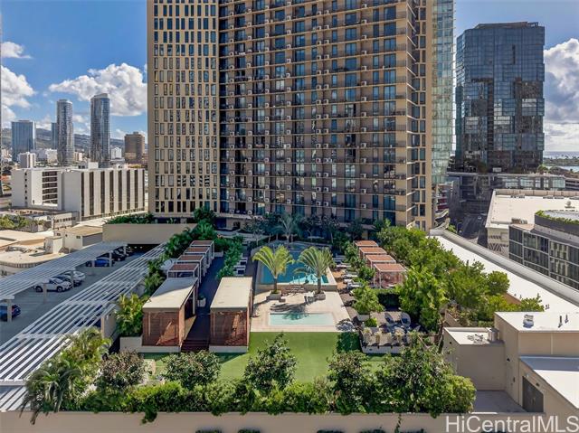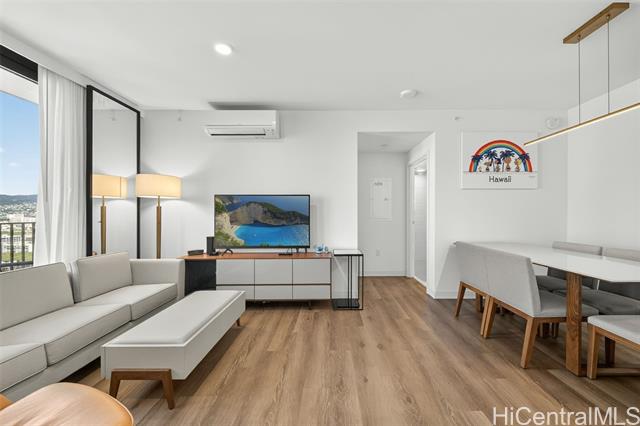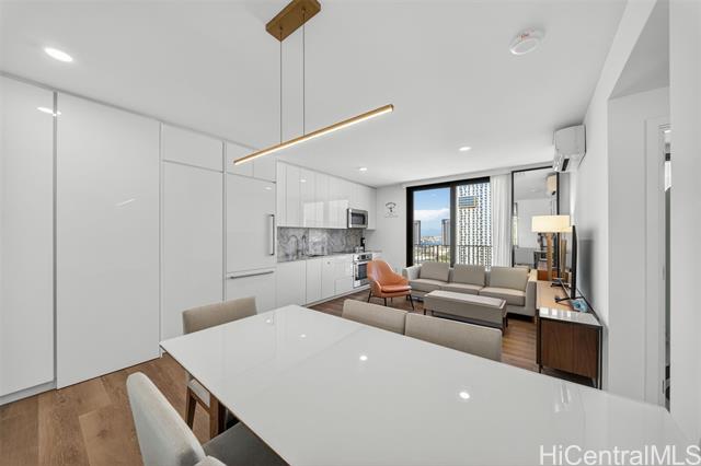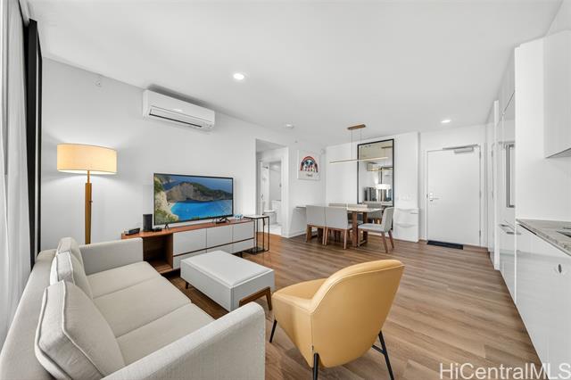 - Welcome to Unit 2303 at A‘ali‘i, a modern 1-bedroom residence in the heart of Ward Village. This FULLY FURNNISHED unit offers expansive city and sunset views through floor-to-ceiling windows, filling the home with natural light and island breezes. The open-concept layout features a sleek contemporary kitchen with quartz countertops, modern cabinetry, seamlessly flowing into the living and dining areas. A‘ali‘i is known for its resort-style amenities, including a rooftop sky deck with ocean views BBQ cabanas, fitness center, yoga room. Located just steps from Ala Moana Beach Park, Whole Foods, Ward Village shops and dining, this unit offers an exceptional urban island lifestyle. Don’t miss this opportunity to own in one of Honolulu’s most desirable communities.