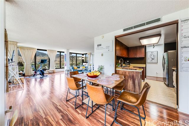 - Live the Marina Lifestyle at Mount Terrace – Hawaii Kai This spacious 2-bed, 2-bath condo at Mount Terrace offers breathtaking ocean, mountain, and marina views. With a retro-modern vibe, the unit features upgraded flooring and refreshed fixtures throughout. The primary bath features a deep soaking furo like tub and TOTO Bidet. The extra-large second bedroom can be cleverly converted to create a third bedroom option—perfect for guests, a home office, or added privacy. This mid floor corner unit captures trade winds and views making it extra desirable. The unit also comes with two assigned parking stalls and storage. Resort-style amenities include a BBQ areas, swimming pool, Jacuzzi, racquetball court, sauna, fitness center, library, and lush park-like grounds. Ideally located in vibrant Hawaii Kai, just minutes from beaches, Costco, shopping, and dining. You will be welcomed by a 24 hour doorman as you enter the incredible entry to this iconic building. Enjoy the best of island living with comfort, convenience, and style in this iconic Hawaii Kai condominium. The perfect Marina lifestyle is just waiting for you to come home.
