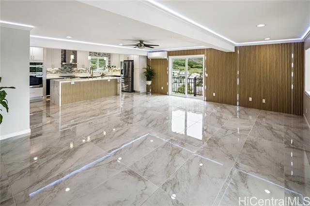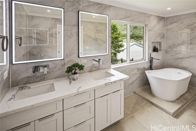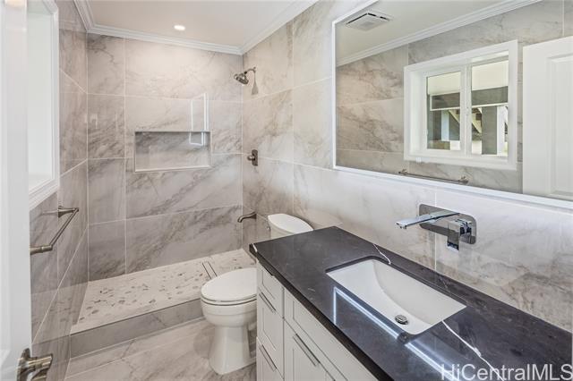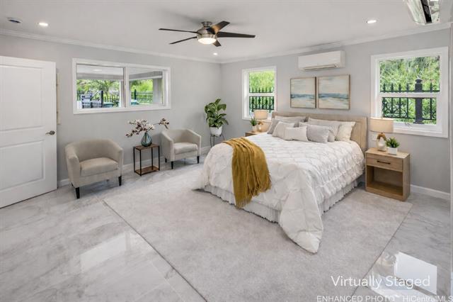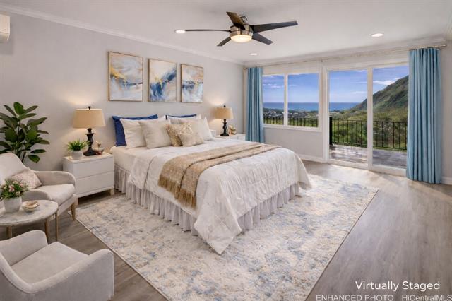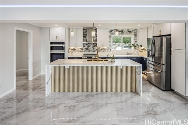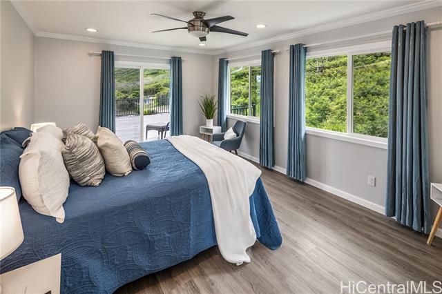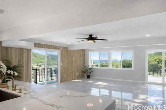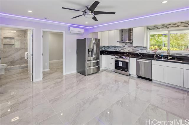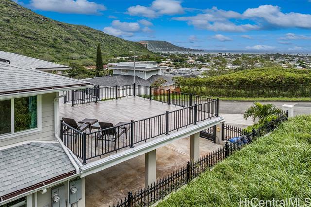 - Discover this elegant & inviting 3-story turn-key residence with beautiful ocean and mountain view, thoughtfully redesigned with quality craftsmanship & modern comfort throughout. A brand-new 2BD/2BA ADU on the lower level offers exceptional privacy with its own driveway, separate electric meter, full kitchen, laundry, and water heater—ideal for extended family or flexible living arrangements. The main home was remodeled and expanded in 2026, featuring a bright & spacious open-concept kitchen and living area filled with natural light, refreshing island breezes, and beautiful lighting. The new kitchen is appointed with granite countertops, soft-close cabinetry, and quality finishes, blending style with everyday functionality. The main level has a luxurious primary suite with a walk-in closet, freestanding soaking tub, separate shower, and a serene, spa-like ambiance. The upper level offers 4 beds and 2 baths, enhanced by ocean and mountain views. Enjoy seamless indoor-outdoor living from the expansive lanai, perfect for relaxing or entertaining. Split A/C throughout ensures year-round comfort, while thoughtful upgrades and tasteful finishes create a refined yet welcoming atmosphere.