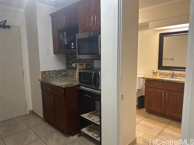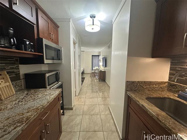 - Versatile 2-bedroom, 2-bath unit thoughtfully configured as two separate living spaces: a studio, and a one-bedroom unit with a full kitchen—ideal for residential living and/or excellent income opportunities for legal vacation rentals. Flexibility is yours! Features include ceramic tile flooring, granite countertops, stainless steel appliances, tiled backsplash and includes furniture and accommodation essentials. Resident manager on site. Enjoy the best of island living with easy access to Waikiki’s many local events, dining, and entertainment, plus the world-famous Waikiki Beach just 2 blocks away.