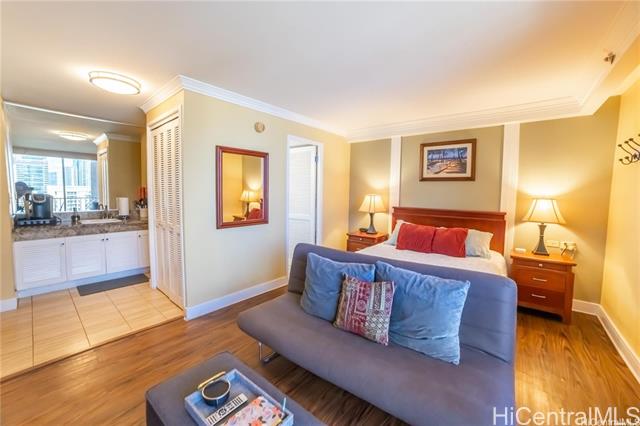 - Don’t miss this rare opportunity to own a beautifully upgraded, legal short-term rental in the heart of Waikiki. This upgraded unit in the Royal Gardens at Waikiki is perfect for your secondary home in paradise or to be used as an excellent income generating short term rental! The unit features stylish upgrades, including new flooring, renovated bathroom, sleek countertops, and luxurious marble finishes. High-end furnishings and attention to detail give the space a 5-star hotel feel! Enjoy resort-style amenities including a community pool, BBQ, fitness center, valet, sauna, lush greenery common areas to lounge, on-site laundry, and much more! Conveniently located just steps to world famous Waikiki Beach, top restaurants, shopping, parks, and entertainment.