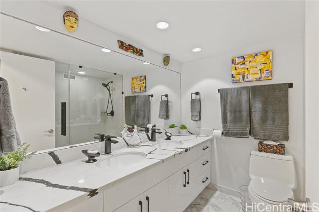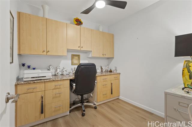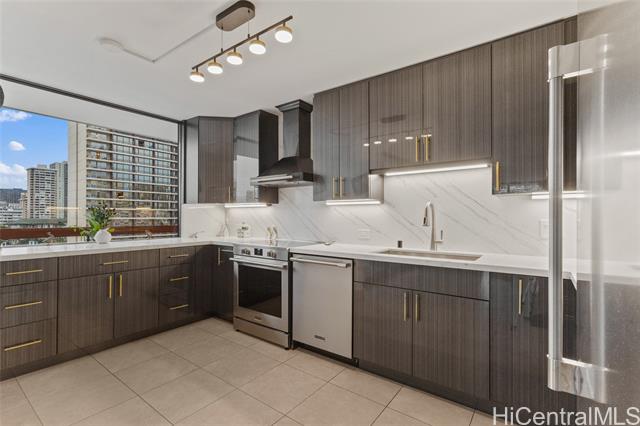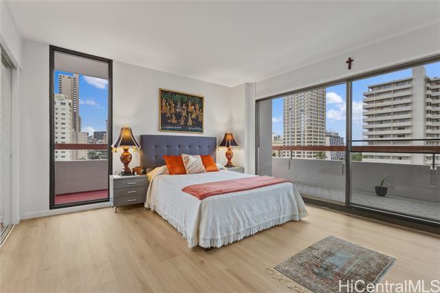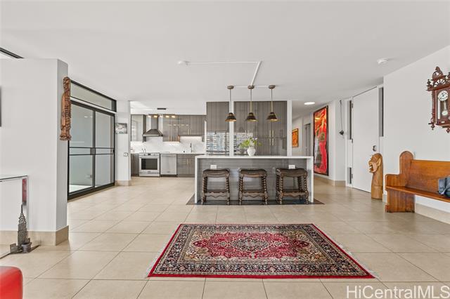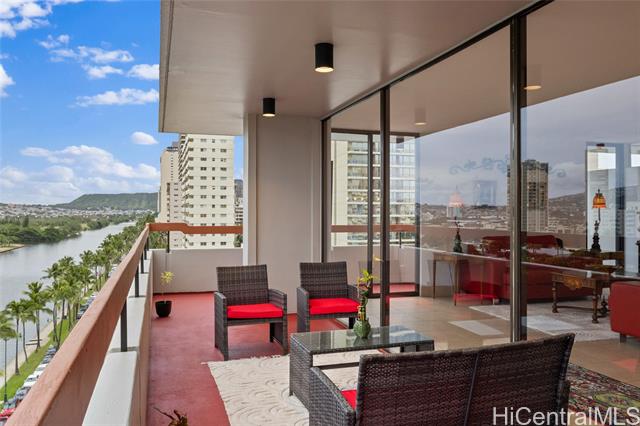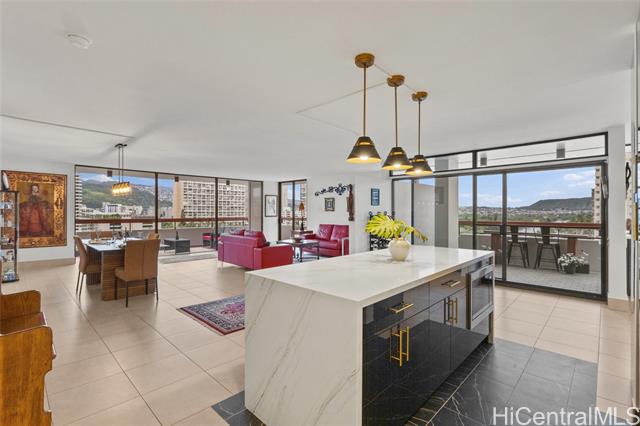 - Nice island living in this exceptional 3-bedrooms, 2.5 bathrooms Penthouse with breathtaking panoramic views of Diamond Head, the Ala Wai Canal, Waikiki Beach, surrounding mountains, and the city skyline. Offering over 1,800 sq. ft. of interior living space, this expansive residence features an open floor plan, a versatile den currently used as an office with built-in cabinetry and desk, and a rare wrap-around lanai ideal for indoor-outdoor living and entertaining. This gorgeous and turn-key penthouse is ideally situated at the gateway to Waikiki, just blocks from beaches, dining, shopping, and entertainment, this penthouse offers a rare combination of space, comfort, views, and location. Renovated in 2025, the home includes a beautifully designed island kitchen with custom cabinetry, high-end appliances, and modern finishes throughout. Luxury vinyl plank flooring, ceramic tiles, and upgraded bathrooms contribute to a refined, contemporary aesthetic. Large sliding glass doors and windows provide abundant natural light and excellent cross-ventilation throughout the residence. Additional storage is conveniently located on the same floor.