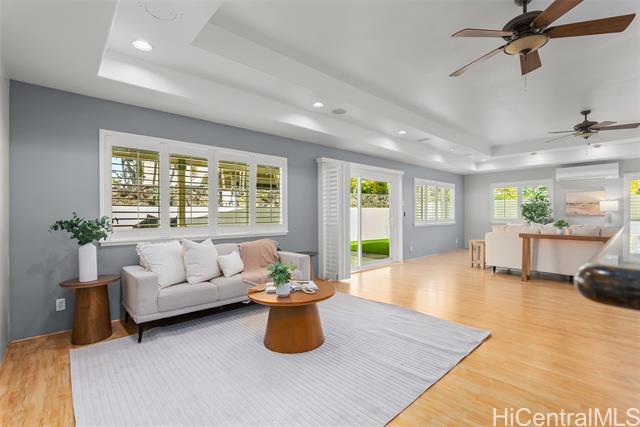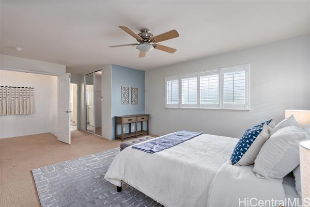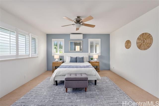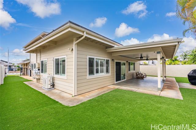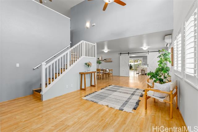 - Space, Style & Smart Living in Mililani Mauka! This beautifully upgraded 4BD/3BA home offers nearly 3,000 sq ft of interior living, including a bedroom and full bath on the main level and a second living area with separate entrance—ideal for multi-generational living, guests, or a home office. Enjoy energy efficiency with 28 owned PV panels, solar water heating, Tesla powerwalls, and a Tesla EV charger. Stay cool year-round with split A/Cs in every room, plus upgraded windows and classic plantation shutters throughout. The home also features abundant storage, a roof approx. 5 years old, and a fully gated yard with low-maintenance turf, perfect for entertaining, pets, or play. Ideally located at the top of Mililani Mauka, offering privacy while remaining close to parks, award-winning schools, shopping, and dining. A rare opportunity combining space, flexibility, and modern upgrades in one of Central Oahu’s most desirable communities.