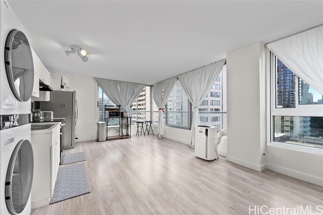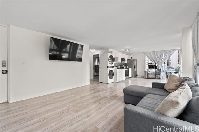 - Don’t miss this fantastic opportunity to own a 1 bdrm/1 bath CORNER/END unit in Waikiki Townhouse. With almost 700 sq. ft. of interior living space, features include vinyl plank flooring, full size washer & dryer, and a nice open floor plan. Conveniently located near the world famous Waikiki Beach with an abundance of restaurants, shopping and entertainments…must see to appreciate!