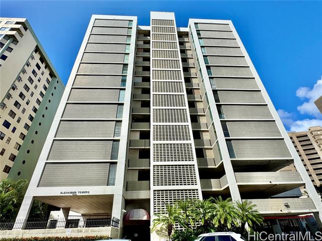 - Come see this move-in ready beautiful clean and bright open-concept 2 bedroom / 1 bath unit located on the penthouse floor at Alexander Towers with a fantastic covered parking stall located just steps away from the elevators! The unit features a great layout with the kitchen and living room flowing together creating a great living space and bedrooms nicely separated by the bathroom with walk-in shower. The interior 710 square footage includes the enclosed 110 sq ft patio and features no popcorn ceiling and ceiling fans installed in each room. The building is conveniently located within a short distance of Kapiolani Hospital, supermarkets, restaurants, and schools, and allows for easy access by car to freeways and bus lines.