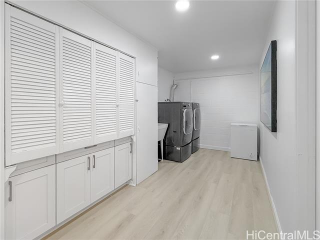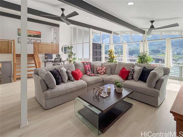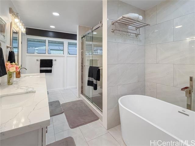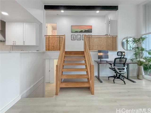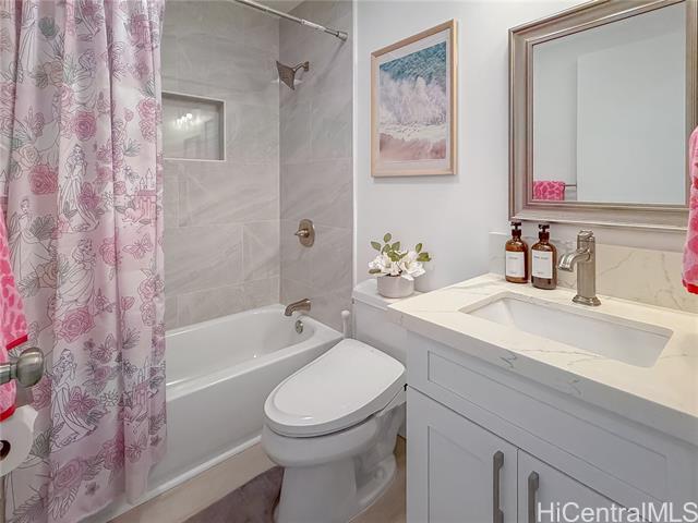 - Beautifully renovated 4-bedroom, 2-bath split-level home in desirable Manoa featuring expansive windows, mountain views, and bright open-concept living. Fully remodeled in 2024, the main living area flows seamlessly to the dining space and a designer island kitchen featuring quartz countertops, GE Monogram appliances, and a professional-grade gas range. Ideal for everyday living and entertaining. A spacious bonus/flex room off the kitchen with sliding glass doors offers excellent space for a home office, media room, or additional living area. Upstairs features a private primary suite with walk-in closet and spa-style bath with soaking tub, walk-in shower, and dual vanities. Two additional bedrooms share a full hall bath. Tax records do not reflect all improvements. An additional bathroom was added during the 2024 renovation and is not reflected in tax records. Lower level includes a bedroom with en-suite bathroom offering dual access from the laundry area, plus interior access to a covered two-car carport with storage—providing garage-like convenience. Convenient location near UH, town, shopping, and freeway access.