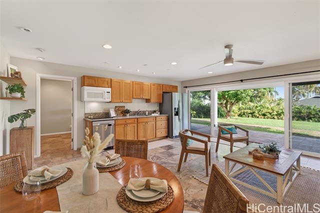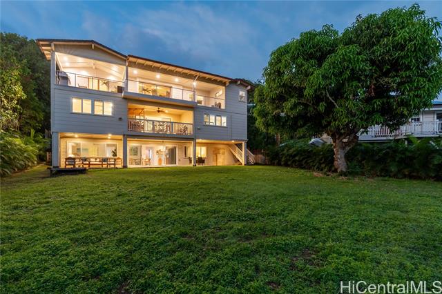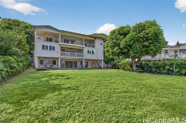 - THIS ONE HAS IT ALL! Ocean views, large level lot, over 5,300 square feet of flexible multi-generational living, and just a stroll to world-famous Lanikai Beach - all under $1,000 per square foot. 33 Solar panels. Designed to live as one refined estate or up to three independent residences, the home is ideal for multi-generational living, guests, or extended family, with separate entrances and parking. The main residence spans over 3,000 square feet with five bedrooms and four baths, high ceilings, hardwood floors, granite finishes, and two expansive decks capturing island and ocean views. Additional spaces include a light-filled studio with its own deck and a separate lower residence with two bedrooms, generous living areas, and seamless indoor-outdoor flow. A rare, expansive level backyard offers exceptional privacy and includes plans for a swimming pool. Solid concrete construction, a peaceful Aalapapa-facing orientation, updated landscaping, and a full second-floor remodel finished in 2025 complete this extraordinary offering.