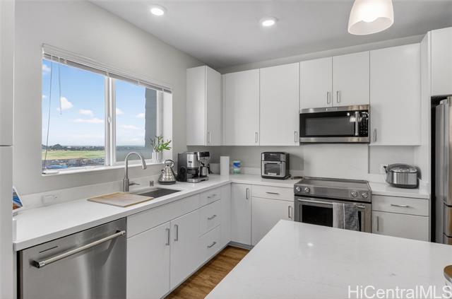 - An open-concept kitchen layout with 2 bedrooms plus a bonus room and 1,143 sq. ft. of interior living space is now available at Nahele in Ho‘opili. This home offers a spacious living area with peaceful greenery views, ample street parking, and convenient access to the nearby rail station. The residence features high-end stainless steel appliances, a deep-mount sink, luxury vinyl plank flooring, and an in-unit washer and dryer. The building provides elevator access, a trash chute, and a secured lobby with key-fob entry. Nahele is part of a thoughtfully designed 25-year master-planned community that will include new parks, dog parks, schools, community pools, recreation centers, basketball and pickleball courts, outdoor fitness parks, a mix of small and large businesses, easy freeway access, convenient rail service, and more. Opportunities in this community are rare—don’t miss your chance.