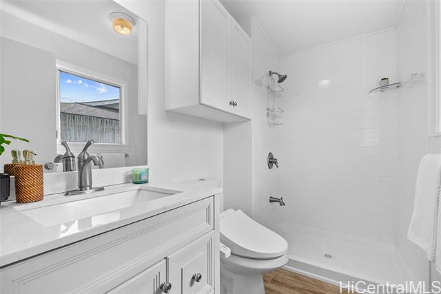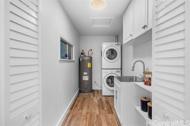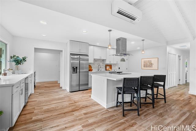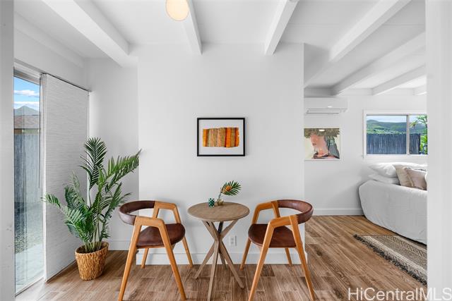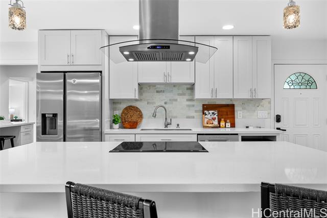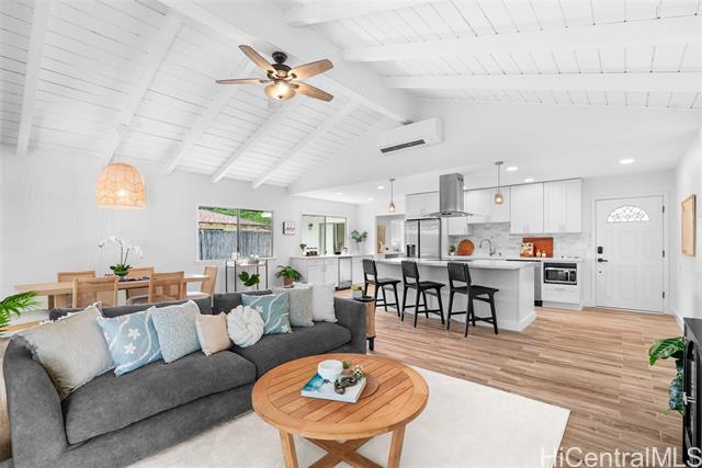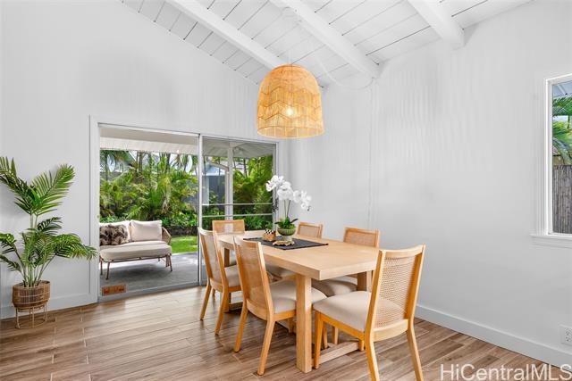 - Completely ready to move right in! Brand new gorgeous plank ceramic tile floors throughout home. Open concept floor plan with vaulted ceilings. Large sliding glass doors in living room & dining room bring in brightness & light. Covered 161 sq ft lanai extends the living space with an outdoor/indoor feeling and lovely tropical, easy-to-care for landscaping. All brand new or newer stainless electric appliances in kitchen with newer cabinets, quartz countertops and deep, stainless farm sink. Main home is 4 bedrooms, 2 bathrooms with separate entry lockout studio suite for total of 5 bedrooms, 3 bathrooms and 2,067 sq ft of living space. All bathrooms have been recently updated with attractive tile in shower, new vanities & solid surface countertops. 2 car garage with ample room for storage. 18 owned PV panels help to offset the electric bill substantially. Close to Hamakua Drive and all the great Kailua restaurants, stores and businesses. 1-1/2 miles to Kailua Beach, 12 miles to downtown Honolulu and 19 miles to Honolulu International airport. Open House: March 7 @ 2-5pm.