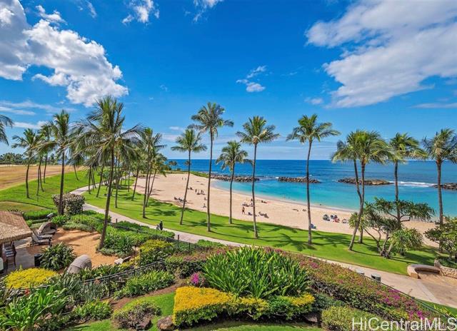 - Discover your own secluded corner of paradise, perfectly positioned within the Ko Olina Resort! An open-concept living area, warm wood flooring throughout, elegantly furnished with plush, top-grain leather furniture, accented by elegant island decor. A cozy atmosphere is created with wood crown molding, designed for both style and functionality. The kitchen features modern, upgraded appliances and cabinetry— is fully equipped for gourmet cooking. Bathrooms boast spa-like walk-in showers w/stylish tile work. The interior design blends a Hawaiian coastal charm with high-end designer furniture, local art, and a relaxing, comfortable, refined atmosphere. Fairways is one of the only communities with 2-car garages, providing ample space for vehicles and storage. Just steps away from the pool, jacuzzi, BBQ and recreation area. As a resort homeowner, you have access to the Ko Olina Beach & Sports Club and special beach parking. Live the ultimate island lifestyle w/pristine beach lagoons, access to the resort's world class amenities, including golf, tennis, pickle ball, fitness center, restaurants, and more. Perfect 2nd home, or premier investment opportunity, fully furnished & turn-key.