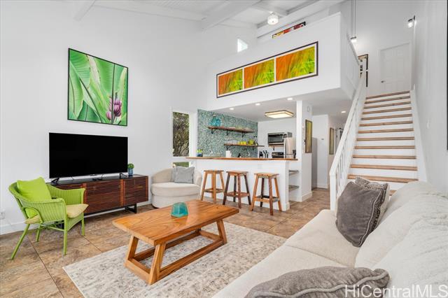 - Nestled in one of the select North Shore communities permitting legal short-term vacation rentals, Kuilima Estates East presents a unique blend of relaxation and investment potential. This beautifully renovated 2-bedroom, 2-bath unit, complete with a spacious loft accommodating up to six, boasts 1,072 square feet of bright, open and airy living space. Step onto the covered lanai to soak in serene golf course views or take a leisurely stroll to the nearby white sand beach. A standout feature is the adjoining access door to Unit #140 directly next door, offering the option to create a 4-bedroom, 4-bath retreat for family and friends or enjoy the flexibility of living in one unit while renting the other for additional income. This is a one of a kind opportunity at Kuilima East. Exclusive amenities include a pool, tennis and pickleball courts, and a BBQ area. Just minutes away, the 5-star Ritz Carlton Turtle Bay Resort invites you to indulge in pristine beaches, world-class dining, and entertainment at Lei Lei's, the Beach House by Roy Yamaguchi, and the Sunset Pool Bar. Seize this extraordinary opportunity to own your slice of paradise on Oahu's fabled North Shore!