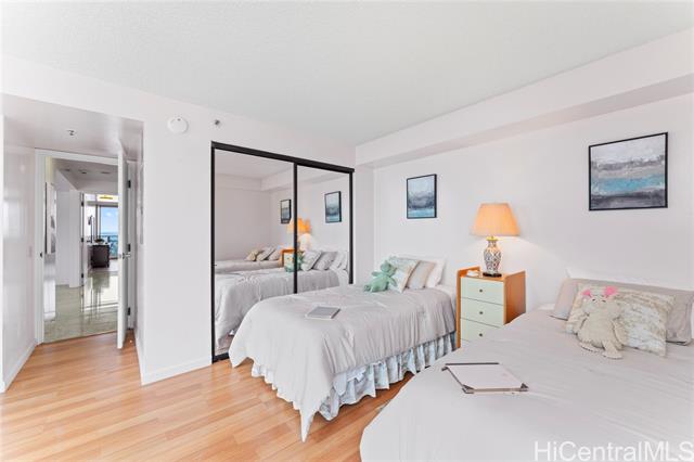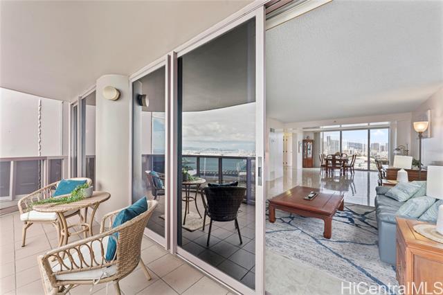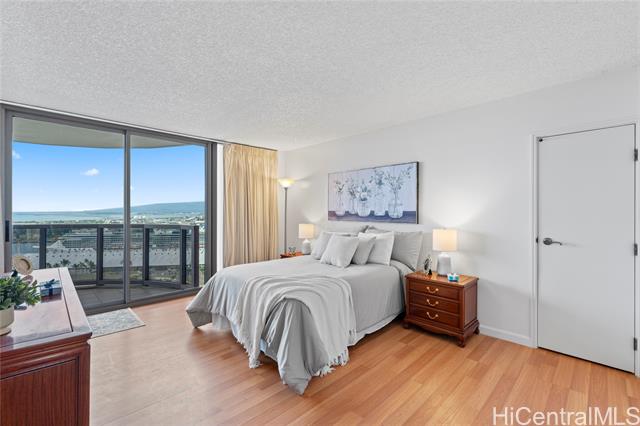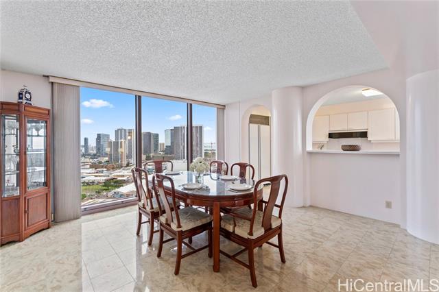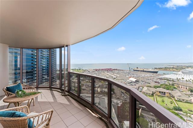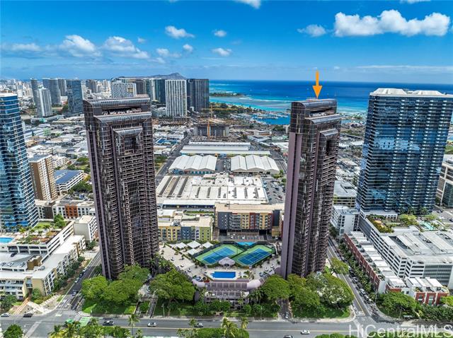 - Sweeping ocean, mountain and city views from this 24th floor unit. Gorgeous, cool stone flooring throughout. This is your opportunity to live in the heart of Kakaako at a well established building. Restaurants, grocery stores, coffee shops, gyms, salons, and boutique shopping just outside your door! Building and unit equipped with fire sprinklers. Central AC, cable, internet and Washer/Dryer hook ups in unit. This two bedroom, two bathroom unit with two parking spaces has been lovingly cared for. Furniture negotiable. School zones obtained from Hawaii DOE school finder website. Buyer to verify. Monthly maintenance fee: $2051, Special Assessment: $114, Loan Assessment: $168 Electricity billed at special rate with maintenance fee: Varies but approximately $300 per month