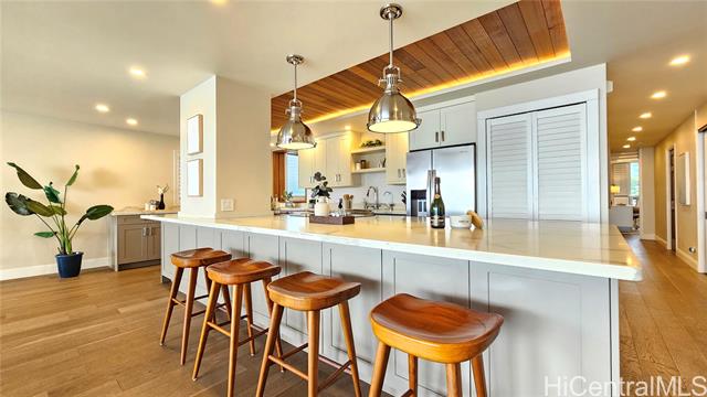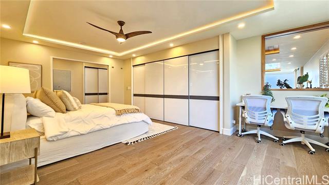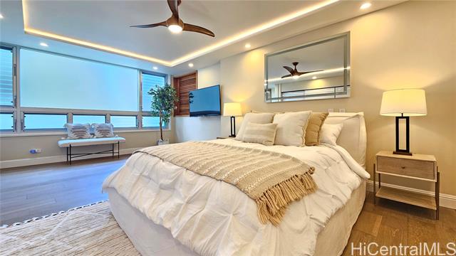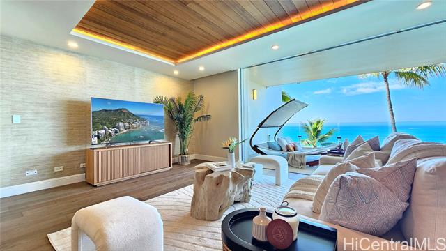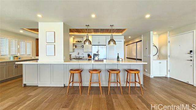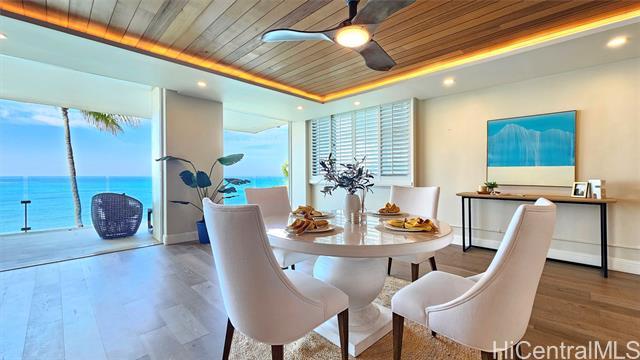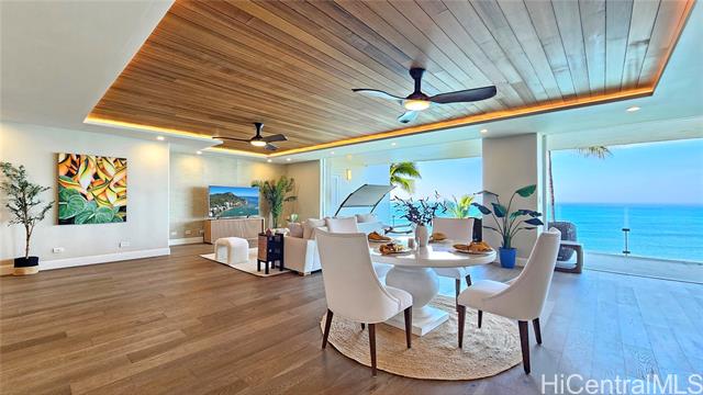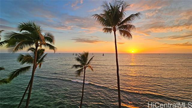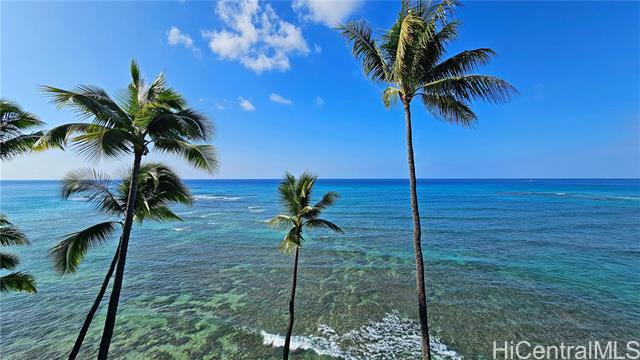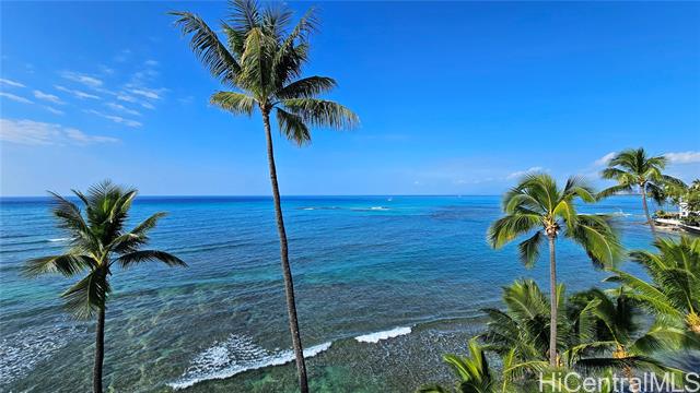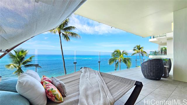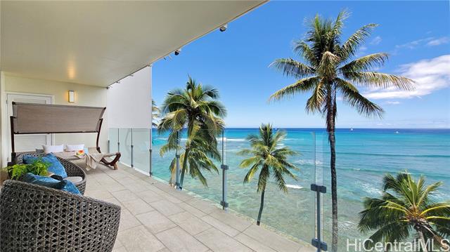- Experience refined oceanfront living on Honolulu’s Gold Coast. This exceptional 3-bedroom, 2-bath residence was fully remodeled in 2020 and showcases unobstructed 180° panoramic views of the Pacific Ocean, perfectly framed by swaying coconut palms. This expansive home features 1,984 sq. ft. of interior living space and a spacious 320 sq. ft. lanai, featuring an open-concept layout designed for elevated living and effortless entertaining. The expansive living room’s lanai doors open wide to capture endless ocean views, while the spacious lanai provides a front-row setting for sunsets, surf, and seasonal whale watching. Two bedrooms are positioned to enjoy beautiful Diamond Head views, creating a rare balance of ocean and mountain scenery. This boutique Fee Simple Gold Coast building offers just two units per floor and features see-through glass railings, secured entry, covered garage parking, and 14 guest parking stalls. Ideally located near Waikiki, Kapiolani Park, and Diamond Head, offering a private oceanfront lifestyle moments away from world-class beaches and dining.