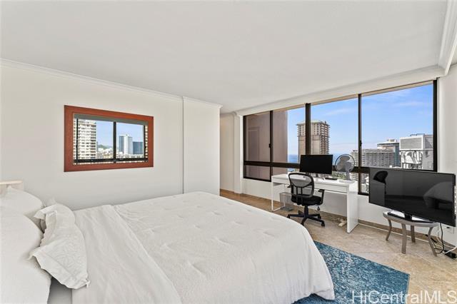 - Enjoy fantastic ocean and Diamond Head views from this spacious 2-bedroom, 2-bath corner residence in a landmark building in Waikiki. This high-floor unit offers an extra-large wrap-around lanai, creating seamless indoor-outdoor living and a true “house in the sky” feel. Exquisitely remodeled, the home features quality finishes, a bright open layout, and motorized blinds for added comfort and convenience. Ideally located just minutes from world-famous beaches, dining, entertainment, and Ala Moana Shopping Center, this residence delivers the best of island living in the heart of Honolulu. Welcome to your piece of paradise.