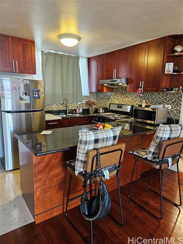 - Kaahumanu Plaza: Prime location on Kinau St, easy access to H-1 on and off! High floor 1 bedroom, 1 bath unit with 1 covered parking, overlooking downtown and sunset views! Unit has been recently renovated with hardwood flooring throughout, Granite countertops, New LG appliances, Gas stove and window A/C. Close proximity to Safeway, Starbucks, Times Supermarket, Ala Moana, Walmart & Sam's Club. Secure Building with swimming pool and community garden. Maintenance fee includes Electric, water, gas. Other fee: window A/C appliance charge. Pet policy: limit 2, dogs/cats/household pets ok but no rabbits, weight limit 30lbs.