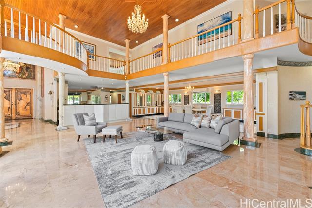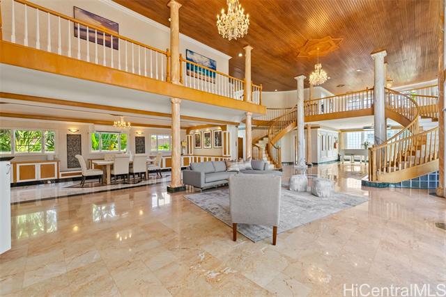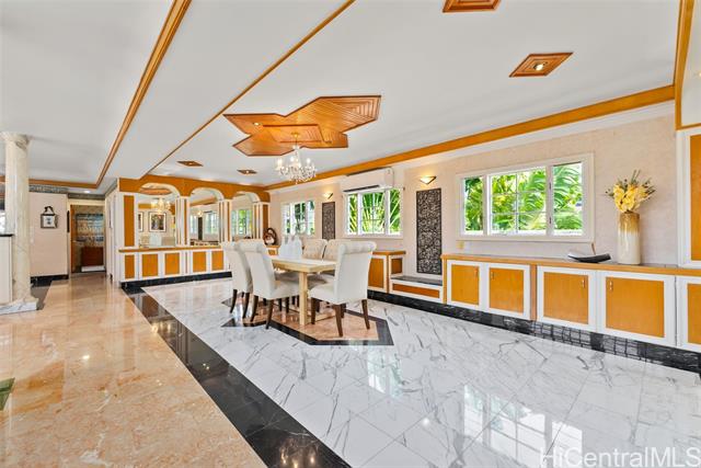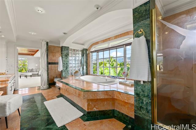 - NEW LISTING!! Experience refined island living in this expansive 6 bdrm, 7.5 ba Kahala residence! Set on a level 11,193 sq. ft. lot with an impressive 7,866 sq. ft. of interior living space, this home is designed for grand entertaining and exceptional comfort. Soaring high ceilings and elegant marble flooring anchor the grand living space, seamlessly flowing from the formal living room to the privately situated swimming pool and whirlpool spa—perfect for indoor-outdoor entertaining. Every bedroom features its own en-suite bathroom, offering privacy for family and guests alike. Additionally, the home is thoughtfully appointed with a private sauna and entertainment room—perfect for lounging and gathering. A rare opportunity to own a luxury estate in one of Honolulu’s most prestigious neighborhoods just moments from the shopping and eateries at Kahala Mall!