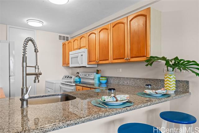 - Discover a premier opportunity to own one of the few condos in Kailua Town offering true 180-degree OCEAN VISTAS. This freshly painted unit features modern light fixtures, cool tile floors and an unbeatable location close to world-famous Kailua Beach The vibrant shops and restaurants of downtown Kailua are right out your door. Enjoy unmatched convenience with Kailua District Park—featuring tennis, pickleball, a skate park and an Olympic-sized pool—only one block away. Within the building, you'll find a welcoming community complete with a lush herb garden, saltwater pool, and a covered area for social gatherings on the recreation deck. Includes a premium parking spot located directly next to the elevator for effortless access and in the gated garage you'll find bike and surfboard storage for your convenience.
