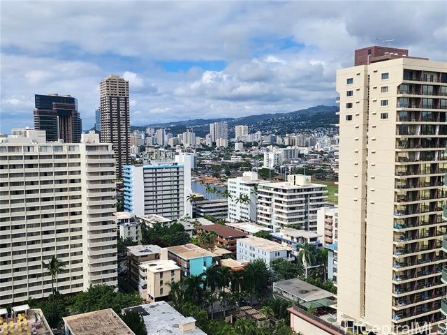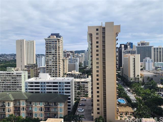 - Welcome to La Casa in the heart of Waikiki—a fully insured, VA-approved building eligible for financing. This high-floor, pet-friendly 1-bedroom, 1-bath residence allows 30-day rentals and has been tastefully updated with brand-new luxury vinyl plank flooring and a remodeled kitchen featuring white shaker cabinets and quartz countertops. The enclosed lanai expands the interior living area to approximately 663 square feet, creating a bright, open, and versatile layout ideal for dining, relaxing, or entertaining. This home also features the convenience of an in-unit washer and dryer and one assigned, secure garage parking stall. La Casa offers excellent amenities including secure guest parking, an on-site resident manager, trash chute, car wash area, loading zone, and a spacious rooftop deck with sweeping ocean and sunset views. Ideally located directly across from the Ritz-Carlton Residences and just minutes to Luxury Row, world-class dining, Waikiki shopping, Fort DeRussy Beach Park, and the Hilton Hawaiian Village lagoon. An exceptional opportunity to own a thoughtfully updated, high-floor Waikiki residence in a premier location.