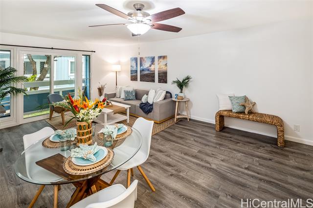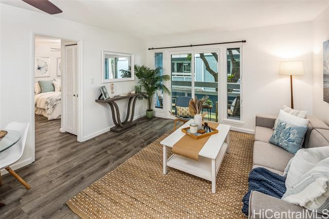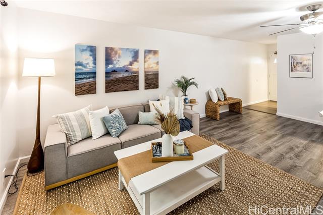 - This well situated ground floor unit was totally remodeled in 2019 - kitchen, baths and new luxury vinyl plank flooring throughout. Freshly painted inside in January 2026. Two bedroom two bath unit with one covered parking stall #136 just steps to the unit. Guest parking is also available. The Hokulani is a close proximity to Target, Safeway, Whole Foods, Kailua Beach and many more shops and restaurants. It also includes a Playground for children and a barbeque area for your enjoyment. Very reasonable maintenance fees makes this a win win for Kailua living. Association recently installed new windows and sliding doors into all of the units at no additional costs to the owners. Easy to see - call and go Sentrilock showing. Offers will be presented as received.