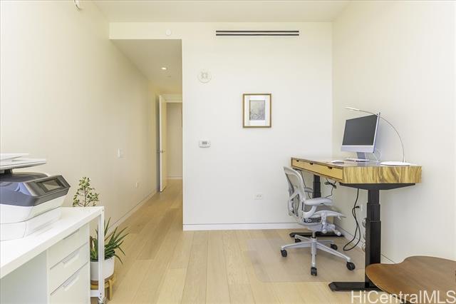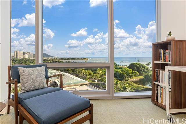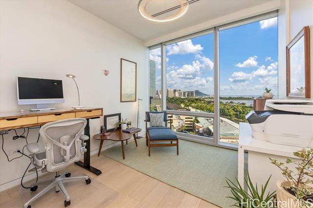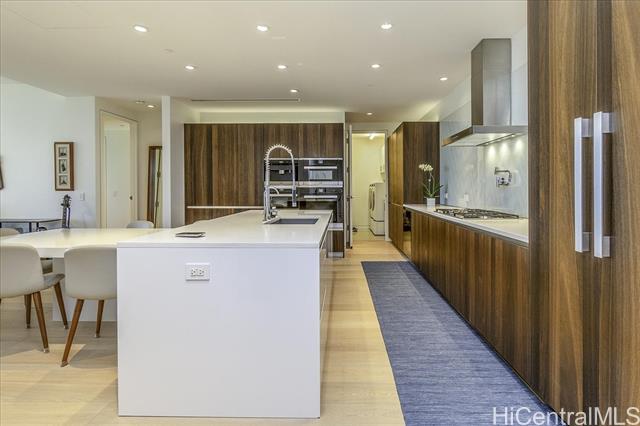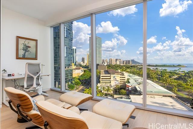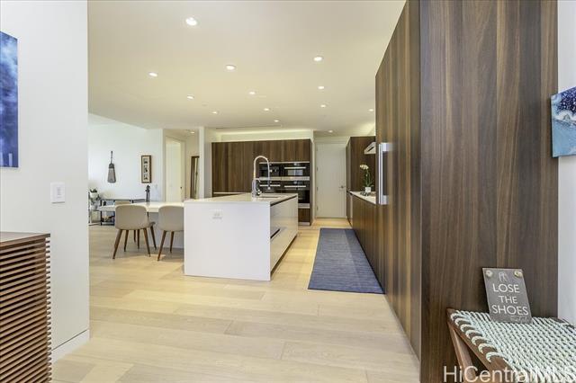 - Elegant 2-bedroom, 2.5-bath residence in Waiea, a boutique luxury tower with only 171 residences, offering exceptional privacy and exclusivity in the heart of Ward Village. This spacious floor plan of approximately 1,900 square feet features generous living and dining areas framed by floor-to-ceiling glass, filling the home with natural light and capturing city and ocean views. The Miele-appointed kitchen showcases premium appliances and refined finishes, ideal for both everyday living and entertaining. The primary suite features a sophisticated Italian modular closet system, providing exceptional organization and storage, along with a spa-inspired primary bath. Excellent storage is found throughout the residence. Included are 2 assigned parking stalls, EV charging, and Storage #3-21. Waiea offers resort-style amenities, including a pool, fitness center, concierge services, and 24-hour security. Ideally located with easy access to Whole Foods Market, Ala Moana Beach Park, and Ala Moana Shopping Center, and surrounded by Ward Village’s outstanding collection of restaurants and cafés, this residence is perfectly positioned in one of Honolulu’s most desirable neighborhoods.