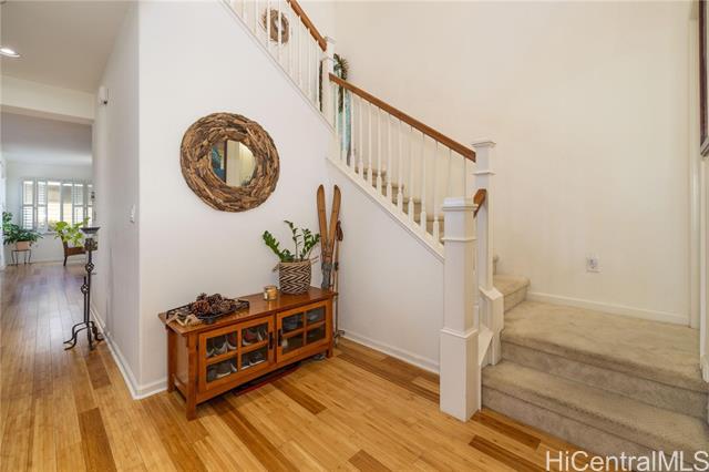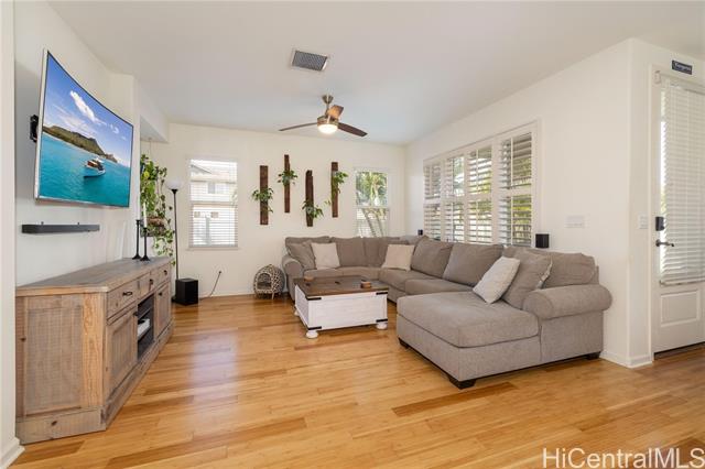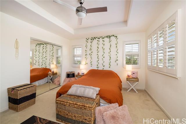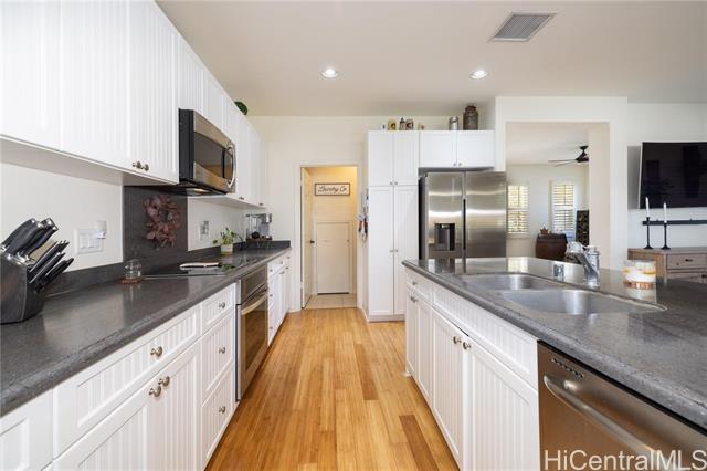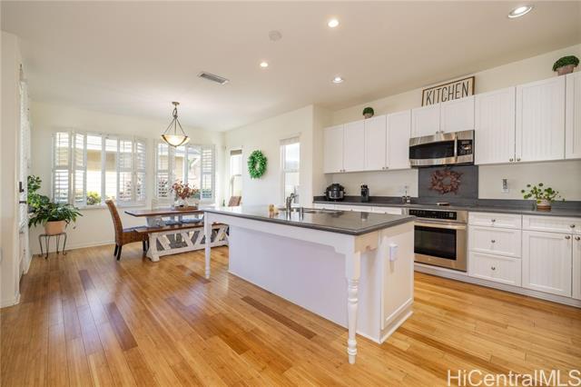 - Spacious 4-bedroom, 2.5-bath home on a corner lot, featuring Berber carpeting upstairs, upgraded shaker cabinets, 42 NEW windows, plantation shutters and a large yard perfect for outdoor enjoyment. The primary suite offers an ensuite bathroom with a garden soaker tub and step-in shower. Energy-efficient photovoltaic panels help keep utility costs low. Conveniently located near shopping, Wai Kai and the esteemed Hoakalei Country Club. Monthly association fees cover essential amenities such as internet, basic cable, access to a dog park, and resort-style recreation center with tennis and pickleball courts, pool and hot tub.