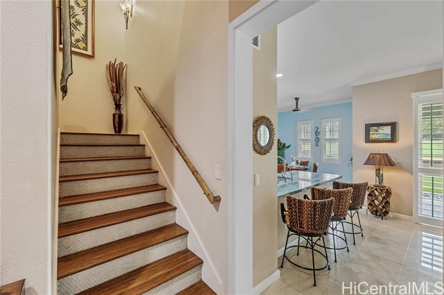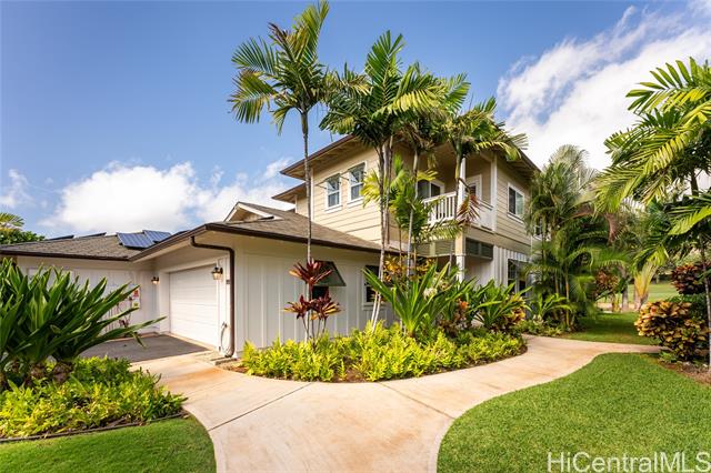 - Resort-Style Living on the 13th Fairway in Ko Olina Resort Experience refined island living in this beautifully upgraded 4-bedroom, 3-full-bath townhouse with peaceful pond views in the prestigious Resort community. Offering 1,834 sq. ft. of interior living, this turnkey residence features upgrades throughout, including owned 22-panel PV solar system. The spacious and flexible floor plan is ideal for full-time living, a second home, or investment use, with a minimum 30-day rental requirement. Enjoy resort amenities including beach access, golf, tennis, pickleball, fitness center, and classes through the Ko Olina Beach & Sports Club. Just minutes to fine dining, marina access, walking paths, and resort conveniences. A rare opportunity to own a turnkey, upgraded residence in one of Oahu’s most desirable resort destinations. Short Notice and Easy to See! Sunday Open House 2/15/2026 from 1:00 - 4:00 p.m.