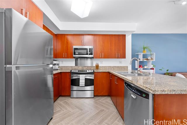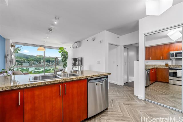 - Welcome to 909 Kapiolani, perfectly situated in the heart of Kakaako and just minutes to Ala Moana. Unit 2405 features an open floor plan showcasing beautiful porcelain tile flooring, a modern kitchen with granite counters and stainless steel appliances, in unit washer/dryer, split A/C, an updated bathroom, and breathtaking city and mountain views from your private lanai! The unit also comes with a full-size, covered parking stall. Some of the many building amenities include 24-hr security, pool, bbq stations, fitness center, and a private room for parties. Pet friendly as well! Reach out to your agent to schedule a private showing.