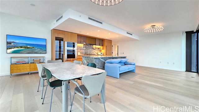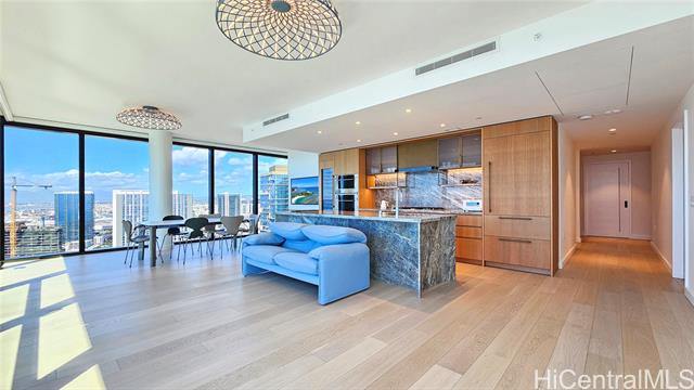 - Experience refined island living in the coveted front-corner “01” residence at Victoria Place. Perched on a high floor and rarely available, this exceptional three-bedroom, three-bath home captures sweeping, unobstructed views of the Pacific Ocean and Kewalo Basin Harbor through dramatic floor-to-ceiling windows. Offered fully furnished with internationally recognized designer pieces, the interior showcases iconic Fritz Hansen furniture from Denmark along with elegant Italian-crafted sofas and tables, creating a sophisticated yet welcoming atmosphere of quiet luxury. The gourmet kitchen features premium appliances, custom cabinetry, and sleek stone countertops, while the primary suite offers a spa-inspired bath and generous walk-in closet with beautiful sunrise views. This high-floor “01” residence represents a rare opportunity to own a meticulously designed luxury home in one of Honolulu’s most prestigious addresses—an exceptional blend of panoramic views, architectural excellence, and designer-level interiors ready to enjoy from day one.a