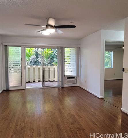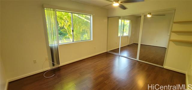 - Enjoy peace & tranquility in Olaloa, Mililani Mauka's 55+ gated senior living community! Spacious, squeaky-clean 2 bedroom, 1.5 bath ground floor corner unit is move-in ready & conveniently positioned near building entrance, steps from dedicated storage closet & community laundry (or install washer/dryer in apartment laundry closet). Features: 2 parking stalls, newly painted interior, easy-care laminate & vinyl floors, window AC, blinds, ceiling fans, mirrored closet doors, stainless microwave oven hood & refrigerator, range, lots of cabinets. Private lanai overlooks trees/greenery. Pet friendly Olaloa offers landscaped grounds, Community Center (library, fitness room, meeting rooms, thrift shop), community garden, walking paths, activities. Mililani Mauka Shopping Center, public transportation & freeway access are near. Enrich Mililani living even further by utilizing the many amenities of the Mililani Town Association recreation centers: pools, pickle ball & tennis courts, classes, social events & more!