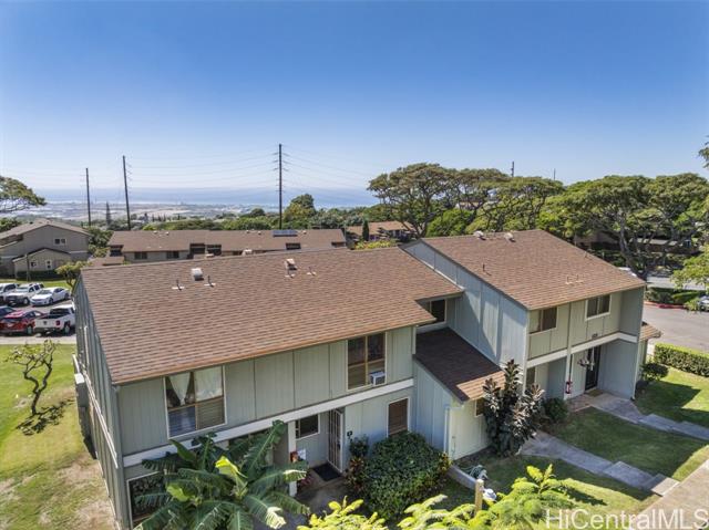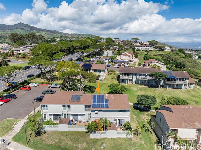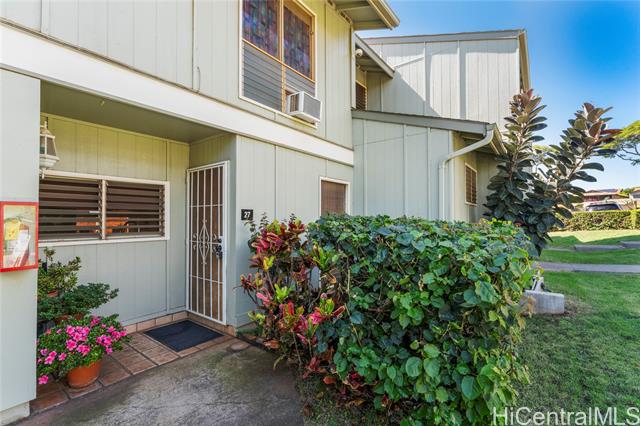 - Welcome to a home that feels like a retreat. This peaceful residence offers gentle ocean views from the bedroom and front walk, constant trade winds, and a comforting, tucked-in garden setting that feels both private and secure. With 11 owned PV panels, energy costs stay impressively low. Significant upgrades including the plumbing improvements completed in 2024, plus updated electrical outlets and switches. The community is warm and welcoming. Designed for easy living, the property is pet-friendly, includes two parking stalls, and offers access to a community pool. Enjoy the rare combination of fresh island breezes, garden serenity, partial ocean views, and a true sense of belonging, this is Makakilo living at its best.