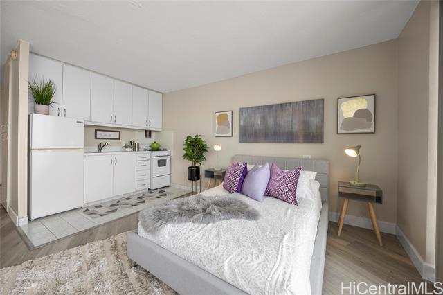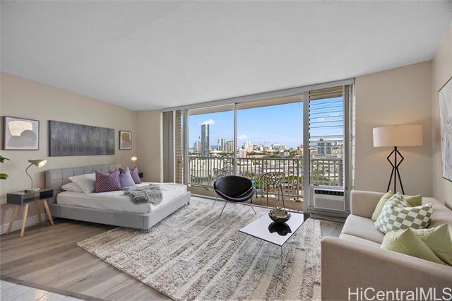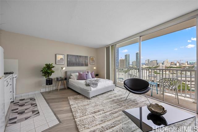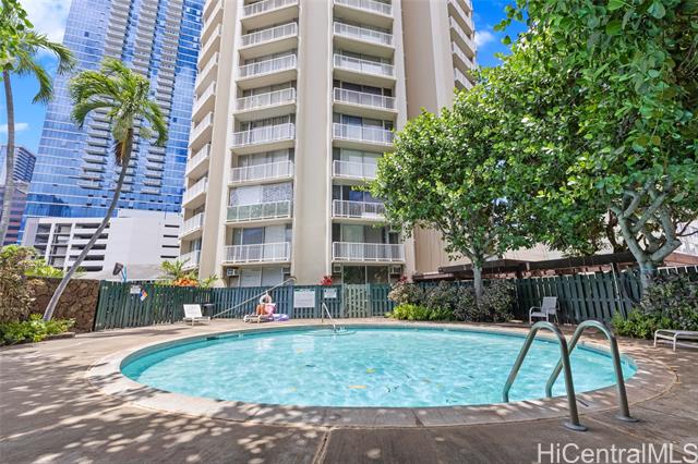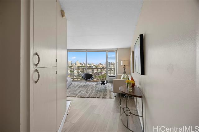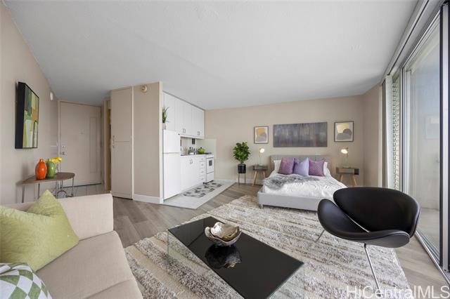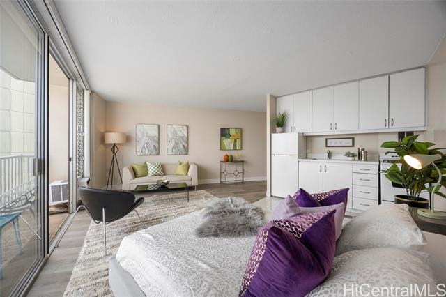 - Spacious and beautifully remodeled studio unit at Holiday Village Condominium, ideal for a first-time homebuyer or savvy investor. This inviting residence features luxury vinyl flooring complemented by ceramic tile, creating a modern yet durable living space. The kitchen is equipped with newer appliances and updated fixtures, while the bathroom showcases a seamless Corian shower surround for a sleek, contemporary feel. Enjoy city views that add an urban touch to this island home. Holiday Village is a well-managed building offering a resort-like pool surrounded by lush tropical foliage and a welcoming gathering area—perfect for relaxing or entertaining. Conveniently located near shopping, dining, and beaches, this centrally situated studio offers comfort, style, and accessibility in one fantastic package.