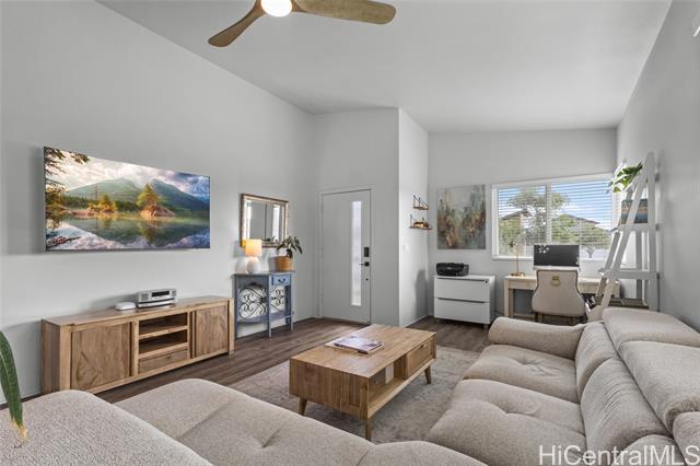 - Welcome to Hale Olena at Ho‘opili, located at 91-1768 Kohanahana Loop—a beautifully maintained home in O‘ahu’s newest master-planned community. Residents enjoy amazing amenities including pools, parks, and inviting outdoor gathering spaces. This spacious 4-bedroom, 2.5-bath, energy-efficient home features 20 owned Maxeon solar panels paired with two Tesla Powerwall Plus batteries, significantly reducing electric costs, along with solar water heating for added efficiency. Inside, durable vinyl flooring complements thoughtfully designed California Closets custom storage, maximizing both functionality and organization. Additional upgrades include a built-in water softener and a four-stage reverse osmosis system, delivering crisp, purified water straight from the tap. The enclosed two-car garage offers added convenience and security. Ideally situated in a vibrant neighborhood with modern amenities just a short stroll away, this move-in-ready home is designed for easy, contemporary island living. Don’t miss this opportunity—schedule your private showing today and experience the best of Ho‘opili living.