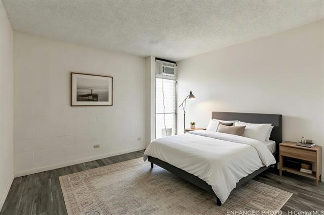 - Your renovated, turnkey condo awaits! This exquisite two-bedroom unit, located on the 14th floor of Plumeria Hale on Kapiolani Blvd, combines modern elegance with everyday convenience. It boasts brand-new luxury vinyl plank flooring, a Whirlpool gas stove, an 18-cubic-foot stainless steel Insignia refrigerator, new drapes, 2 new window ac units for the living room and primary bedroom, and a spacious double-basin sink. From the lanai, you can enjoy stunning views of Diamond Head and a peek-a-boo ocean view, complemented by refreshing Mauka breezes. Perfectly situated near the University of Hawaii, public transportation, highway access, and Ala Moana Shopping Center. The building includes on-site community laundry and one covered parking space near the entrance. Enjoy secure entry with a key fob, intercom system, video surveillance, and bike/moped parking.