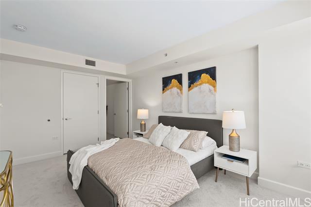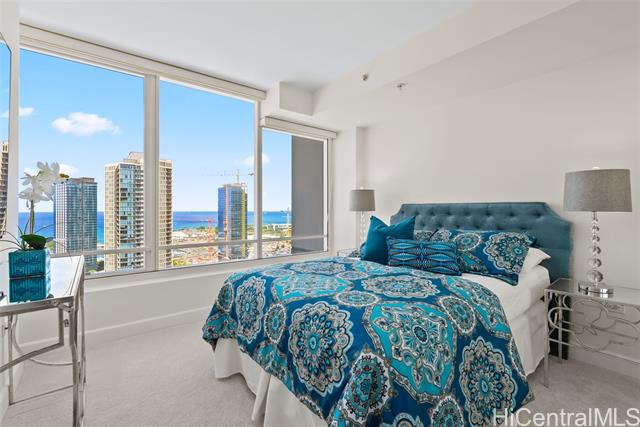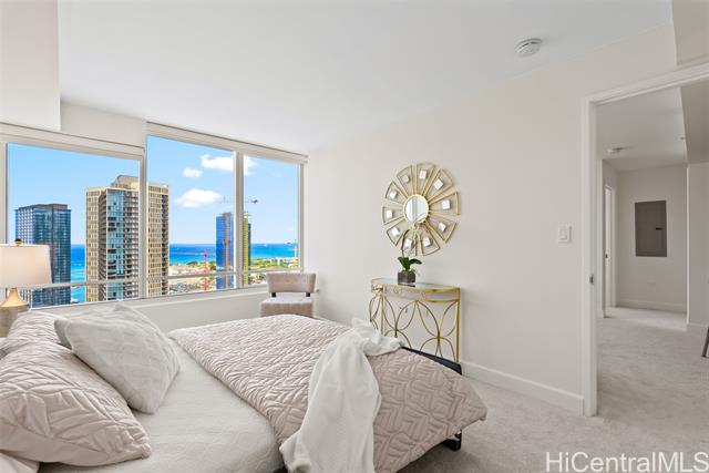 - Situated in the heart of Kaka’ako, come see this beautifully updated 2 bdrm/2 bath/2 cov’d parking unit in Pacifica Honolulu. With over 900 sq. ft. of interior living space, features include fresh int. paint, new carpet and a spacious open floor plan designed for comfortable living and entertaining. The modern kitchen boasts stainless steel appliances that opens up to the living room with expansive windows that offer maximum natural light and breathtaking ocean and city views. Enjoy resort-like amenities such as a pool & spa, movie theaters, BBQ areas, firepits, recreation area, and more! Located just minutes from Ala Moana Beach Park, Ward Village, and Ala Moana Shopping Center with world-class shopping and entertainment!