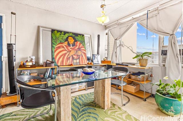 - Corner unit with Diamond Head views. A unique loft conversion of a former 2 bedroom featuring an airy, open layout with endless possibilities. Perfect for those who value space, light and creative freedom. Can be easily converted to a 1 or 2 bedroom. Covered secure parking. Kitchen and bath updated in the past. Pet friendly. Maintenance fee includes all utilities.