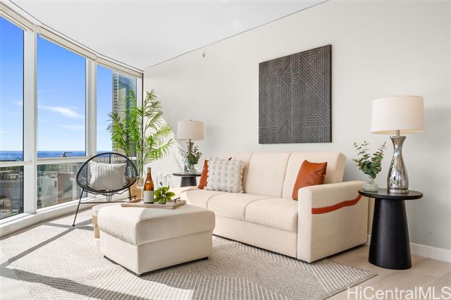 - Beautifully Renovated 3-bedroom, 2-bath Moana Pacific unit in the heart of Kaka‘ako offering 1,206 sq ft of interior living plus a lanai lanai. With a new flooring in the main living space this year, this well-maintained home features a desirable open layout and floor-to-ceiling windows that capture sweeping city, mountain, and ocean views. The 180-degree arc-designed living room creates an expansive and light-filled space ideal for everyday living and entertaining. Enjoy central AC, a well-appointed kitchen with granite countertops and stainless steel appliances, and two assigned parking stalls. Moana Pacific is a pet-friendly, well-managed building with resort-style amenities including a lap pool, hot tub, fitness center, tennis courts, BBQ areas, recreation rooms, meeting room, library, theater, playground, and putting green. Conveniently located near Ala Moana, Ward Village, shopping, dining, beaches and so much more! Just a stone's throw from the world-famous Ala Moana Shopping Mall! Don't miss this!