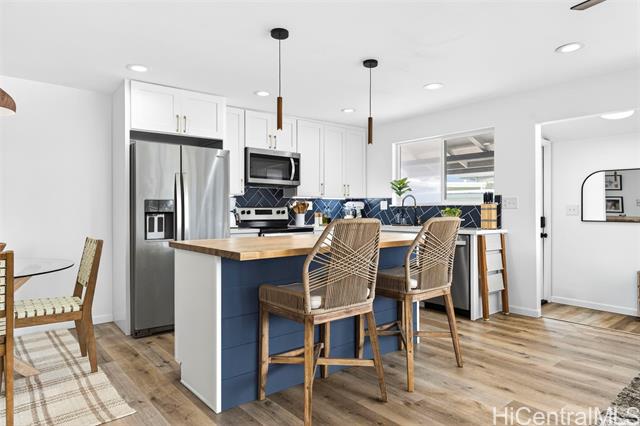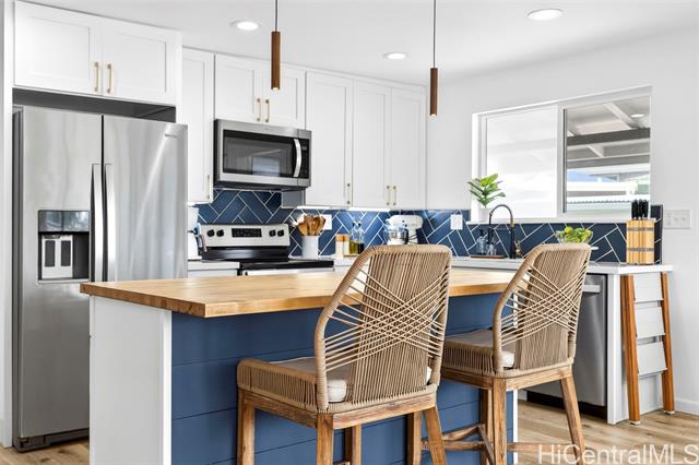 - BEAUTIFULLY RENOVATED in 2022 and tucked into one of Kailua’s most beloved neighborhoods, this single-story home offers the relaxed island lifestyle so many dream about. Just under a mile from world-famous Kailua Beach, mornings begin with soft sunrise colors & a peek at Mount Olomana right from your living room, while days flow effortlessly between indoor comfort and outdoor living. The thoughtfully updated interior features modern finishes, quartz countertops with warm veining, butcherblock island, waterproof luxury vinyl flooring, updated cabinetry, & split AC for year-round comfort. Outside, the newly landscaped backyard offers a fresh lawn and a cool covered patio perfect for weekend barbecues, or unwinding after a day at the beach. Located on a quiet, low-traffic street with plenty of guest parking, this home also offers freedom from HOA fees & convenience to nearby parks, shopping, dining, Target, Whole Foods, plus easy access to H-3 & the Pali. With a dedicated indoor laundry room, carport storage, & 2022 termite tenting, this home blends peace of mind with the charm & ease of Windward living — experience the Kailua lifestyle! (One or more photos have been enhanced)