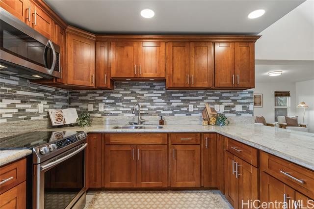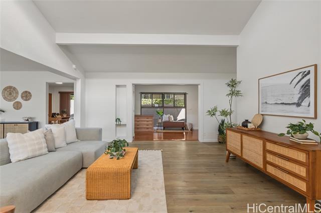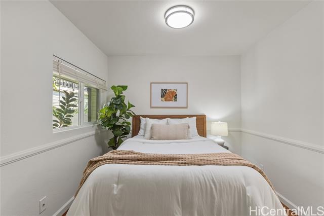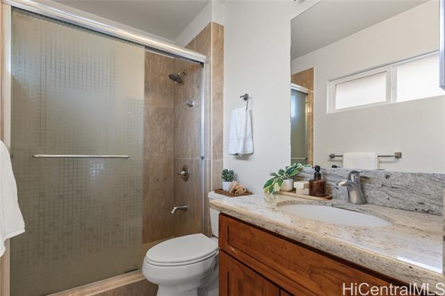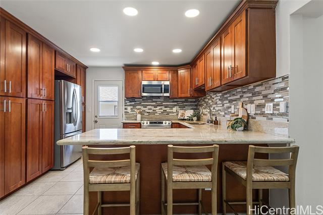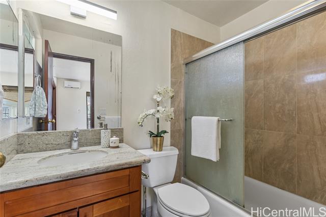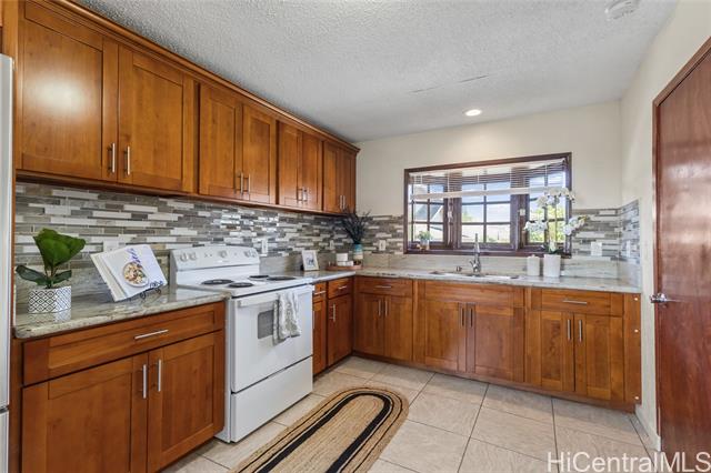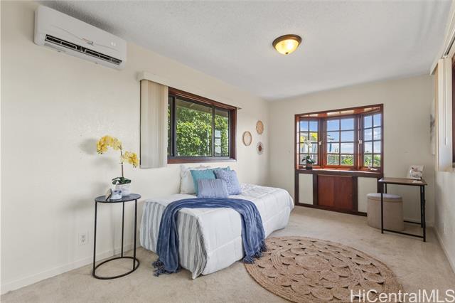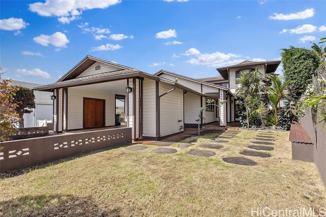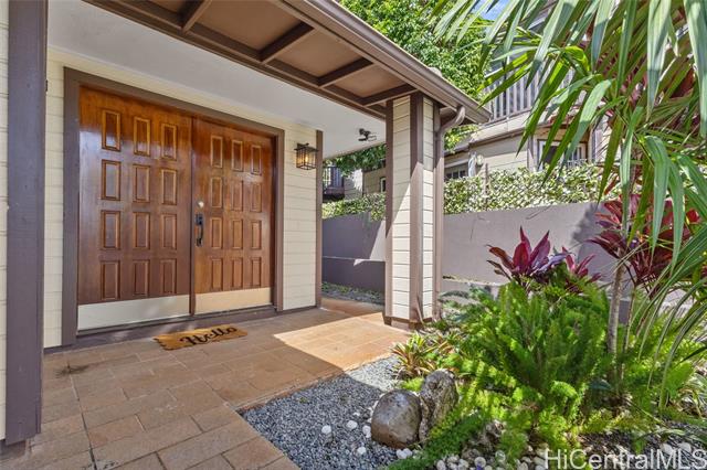 - Beautifully upgraded and thoughtfully designed, this Mililani residence offers the perfect blend of comfort, flexibility, and style. Featuring 5 bedrooms, 4 full bathrooms, plus a den ideal for a 6th bedroom or home office, the layout is well-suited for multi-generational living. The main level includes 3 bedrooms + den and 2 full baths, including a primary suite with an en suite bath and walk-in shower. Enjoy an updated kitchen and a refined mix of vinyl and hardwood flooring throughout the main level. Upstairs offers a private retreat with 2 bedrooms and 2 full baths, a separate entrance, and a second primary suite with en suite bath—perfect for extended family, guests, or added living flexibility. Hardwood flooring enhances the upper living areas, with carpeted bedrooms for added comfort. Air conditioning throughout the home provides year-round comfort and climate control. Framed by lush front landscaping and conveniently located near Mililani Town Center and Mililani High School, this is elevated island living at its finest. Ask us about VA assumable!