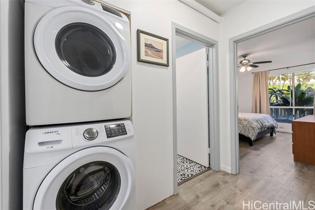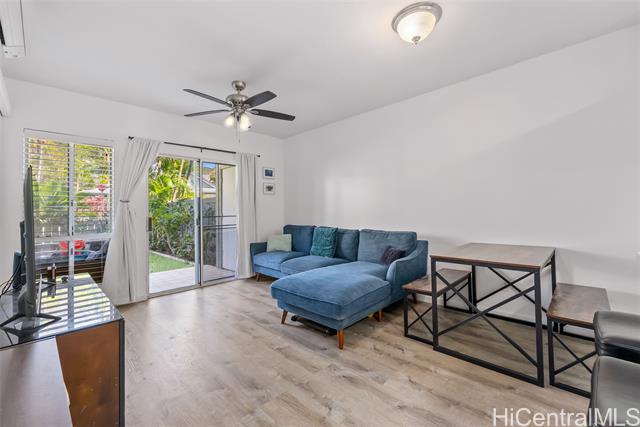 - RARE ground floor 2 bedroom unit at Streamside at Launani Valley! Featuring 713 sq ft of interior living space, a 69 sq ft lanai, plus a private fenced in yard and many updates including split A/Cs in each room, modern bath & kitchen, stainless steel appliances, luxury vinyl floors, additional storage and 2 parking stalls. Streamside has under $1/sf maintenance fees, is VA approved, pet friendly, and fully insured! Enjoy access to both Streamside and Launani Valley amenities which offers a pool, jacuzzi, BBQs, rec room, basketball/tennis/pickleball courts, walking paths, dog park, guest parking, and more! Conveniently located near Schofield Barracks, Wheeler Army Airfield, and freeway access.