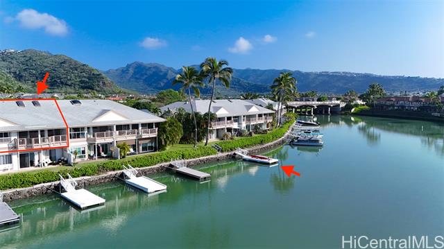 - Enjoy waterfront living in this fee simple gated community residence! This 3 bedroom, 2 full bathroom home is over 1400 sqft and features a private 20-ft dock accommodating up to a 30-ft vessel. Recently remodeled with new flooring, updated kitchen cabinetry with quartz countertops, and new bathroom vanities. A versatile loft, vaulted ceilings, and skylights enhance the living space and natural light. Watch the sun and moon rise over Koko Crater and panoramic views of the marina. Bask in refreshing cross-breezes throughout the home or relax on the covered lanai. Conveniently located near dining, shopping, Costco, and nearby amenities. Two assigned parking stalls (one covered) with built-in storage included. Other fees include Spectrum 1GB speed internet, 80+ TV channels, HBO Max, HULU plus, Disney+, Paramount, AMC+, ESPN, Peacock and more! Pet friendly building with no restriction on size, breed, or number of furry friends (please verify).