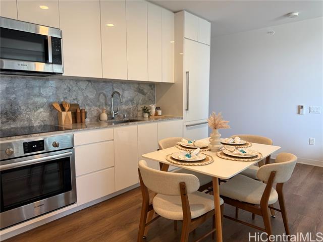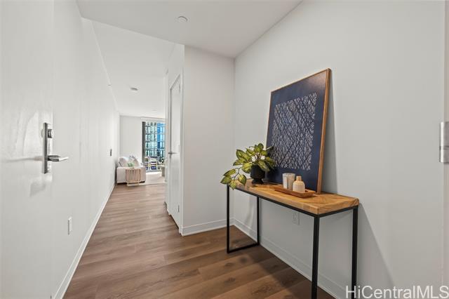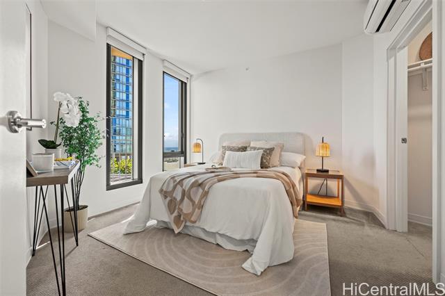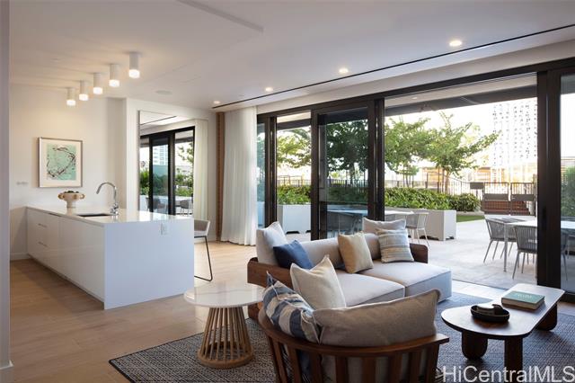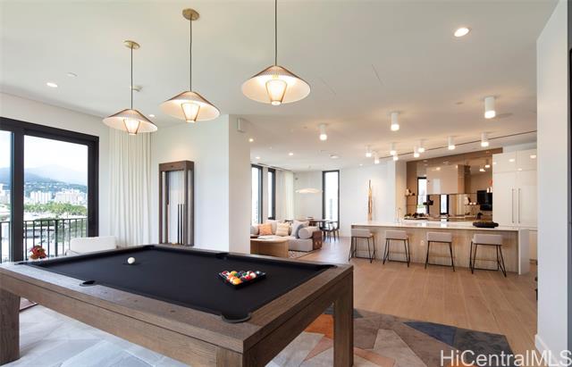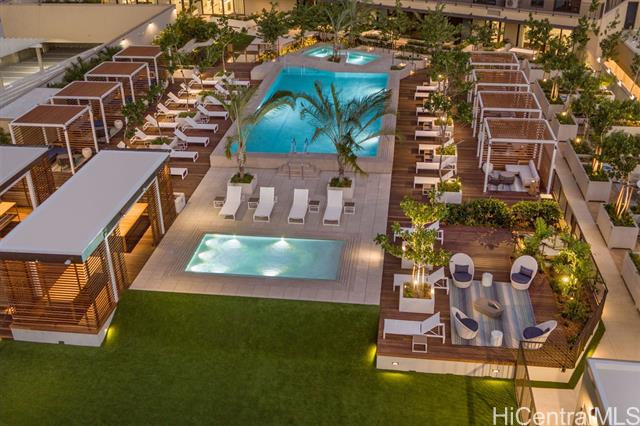 - Located in Ward Village, this one-bedroom Aalii unit is located on the Diamond Head side of the building and provides a sunny view of the ocean from your own private lanai. Bosch appliances grace the kitchen with Whirlpool washer and dryer close at hand. Split air conditioners in the bedroom and living area keep the unit cool and a fresh coat of paint throughout makes this unit just like new! There is one secured parking with overhead storage and a 24/7 front desk to assist you. There are two amenities decks with something for just about everyone! The penthouse level on the 42nd floor includes a 360-degree view of the surrounding ocean and mountains, comfortable indoor and outdoor workspaces, meeting rooms, and a fully equipped gym. The eighth floor pool and jacuzzi are surrounded by barbeque areas, cabanas, a playground, keiki pool and party rooms with fully equipped kitchens. A dog washing station and play area are located on the ground floor. This unit is steps from theatres, award winning restaurants, shopping, groceries, urgent care, and ocean recreation. It does not get much better!