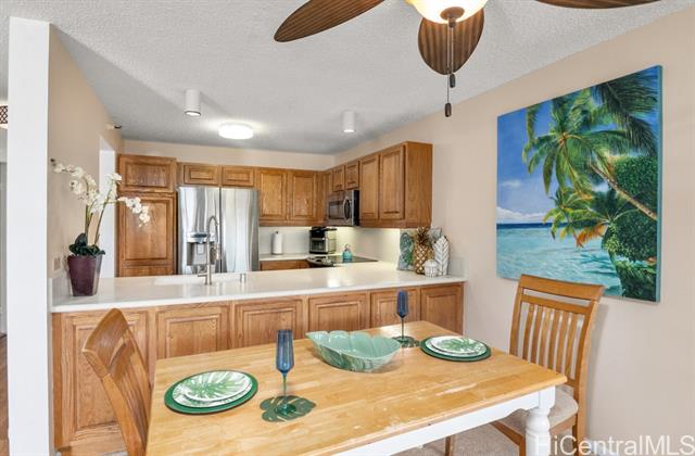 - Military Veterans may assume a VA Mortgage. 4.5% 30y fixed, P&I $848.86, Taxes & Ins. $1,95.92, Escrow $220.4 = Mortgage $3,019.47 mo. Renovated primary bath. Condo with spectacular ocean and marina views in a desirable community that offers a relaxed Hawaiian lifestyle. This 2-bedroom, 2-bath unit features an open floor plan that allows for plenty of natural light and a seamless flow between living spaces, with a lanai overlooking a majestic mountain. Fire sprinklers, spacious LR & Primary adorned w/ large windows that provide stunning views of the tropical landscape below and blue ocean to the left. The kitchen is well-equipped w/ modern appliances, cabinet space, and cozy dining. Bedrooms are generously-sized, with the main suite boasting a large en-suite bathroom and fire sprinklers throughout. On the grounds, residents can enjoy the beautiful Hawaiian tropical landscape. Additional amenities feature access to a heated swimming pool, spa, fitness center, sauna, recreation rooms, manicured landscaped gardens, and more. Some of the photos may be enhanced.