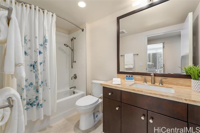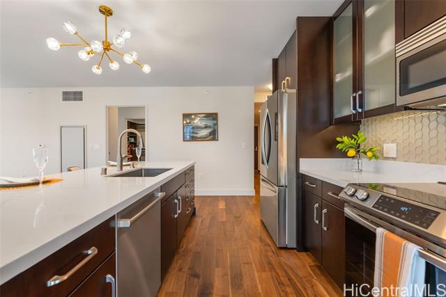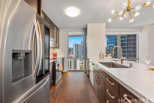 - Enjoy the coastal lifestyle of Waihonua - 3 bedroom, 2 bathroom ocean view, corner unit in the prestigious Ala Moana, Ward Village area in the heart of Honolulu. The unit is beautifully upgraded with European designer countertops, new appliances, designer lighting fixtures, fully built-in closet systems, seamless blackout blinds and hardwood flooring! World class amenities include: chef's kitchen in club room, fitness center, yoga and private workout studio, spa, pool, theater, BBQ cabanas & guest suites! All in a perfect location for an active lifestyle, steps away from Ala Moana beach, Whole Foods, shopping & restaurants! 3-bedrooms are rarely available at this great value!