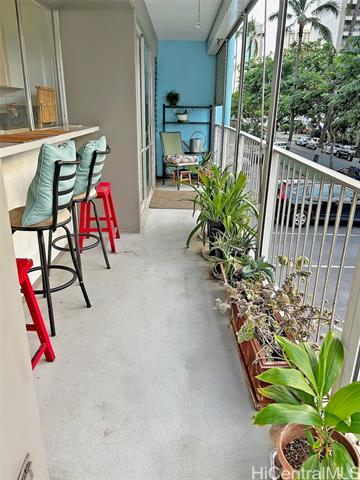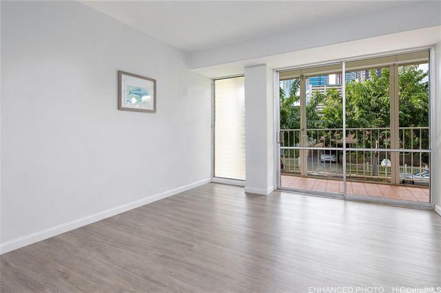 - Wonderful location in Waikiki! Upgraded 2-bedroom, 2-bath, 1-parking residence, just moments from shopping, dining, parks, and the beach. The corner end unit offers an airy and inviting feel that opens to a spacious wraparound lanai that provides seamless indoor–outdoor living from every room. Some of the upgrades include vinyl flooring throughout and a thoughtfully updated kitchen with white all-wood shaker cabinetry, quartz countertops, stainless steel appliances, and an island with breakfast bar, perfect for casual dining or entertaining. Additional highlights include a full size stacked front-loading washer and dryer and a spa-inspired primary bath with a soaking tub. Furnishings and kitchenware are optional.